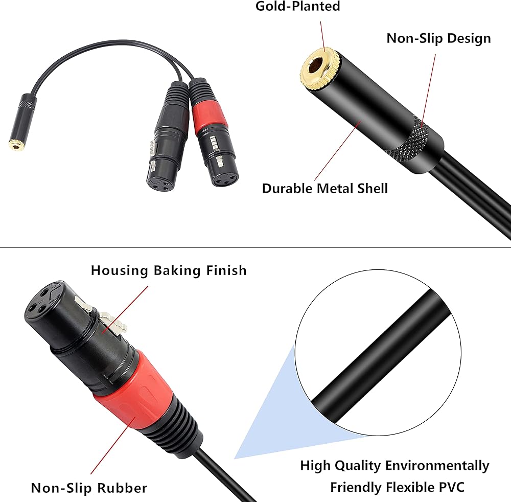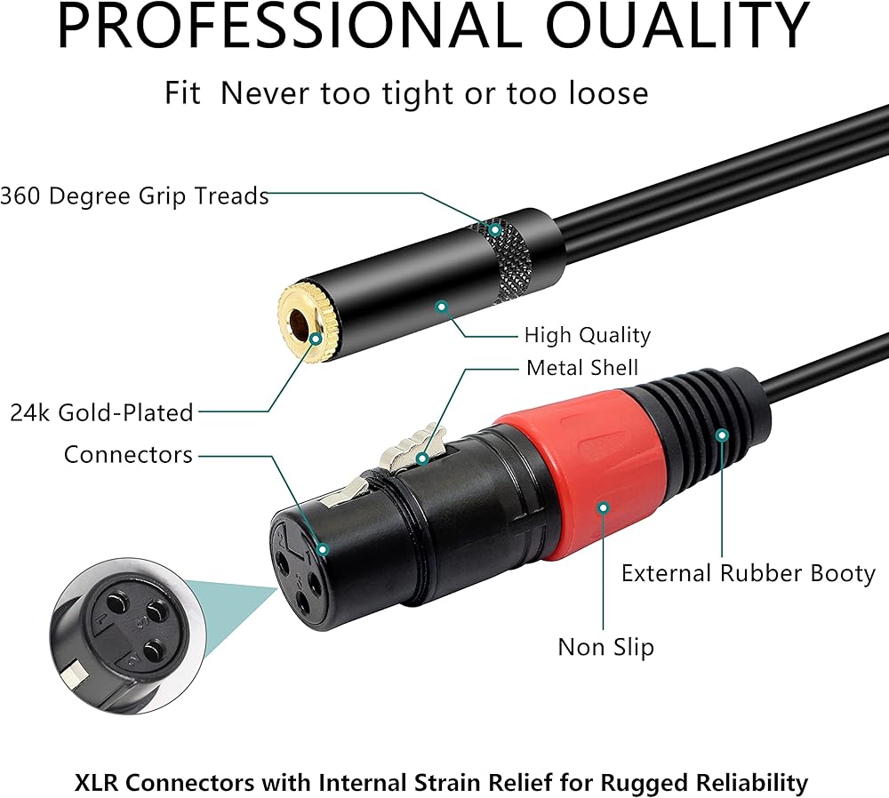 الملاءمة: كابل MEIRIYFA مقاس 1/8 بوصة إلى XLR مزدوج يربط الأجهزة بمقبس 3.5 مم، مثل الهواتف أو iPod أو مشغل MP3 أو الكمبيوتر اللوحي أو الكمبيوتر المحمول أو مسجل الصوت، إلى وحدة التحكم أو مكبر الصوت. ينطبق على أجهزة الكمبيوتر وملفات MP3 وأقراص DVD ومشغلات الأقراص المضغوطة وأجهزة التلفزيون وأجهزة الراديو ومكبرات الصوت، حيث تنقل مكبرات الصوت إشاراتها الصوتية.