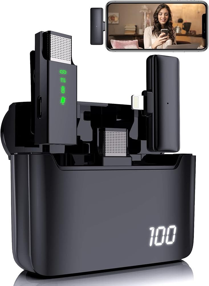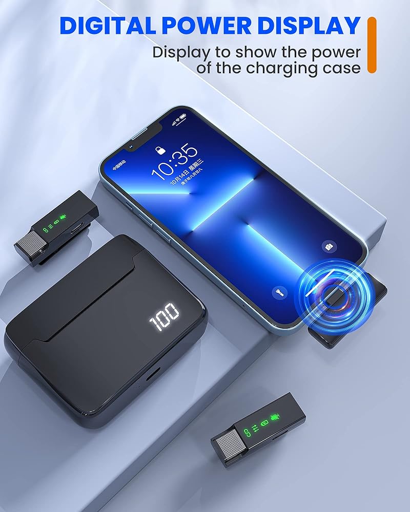 【وقت العمل لمدة 36 ساعة وصوت حاد عن بعد】 تعمل الميكروفونات اللاسلكية المدمجة ببطارية قابلة لإعادة الشحن بقدرة 60 مللي أمبير في الساعة لمدة تصل إلى 6 ساعات بشحن واحد لمدة 1.5 ساعة. يحافظ الإرسال اللاسلكي القوي بطول 65 قدمًا على استقرار الصوت، حتى على المسافات الطويلة. مع واجهة Lightning في كل وحدة، يمكننا شحن iPhone أثناء التسجيل. لا مزيد من الذعر البطارية المنخفضة