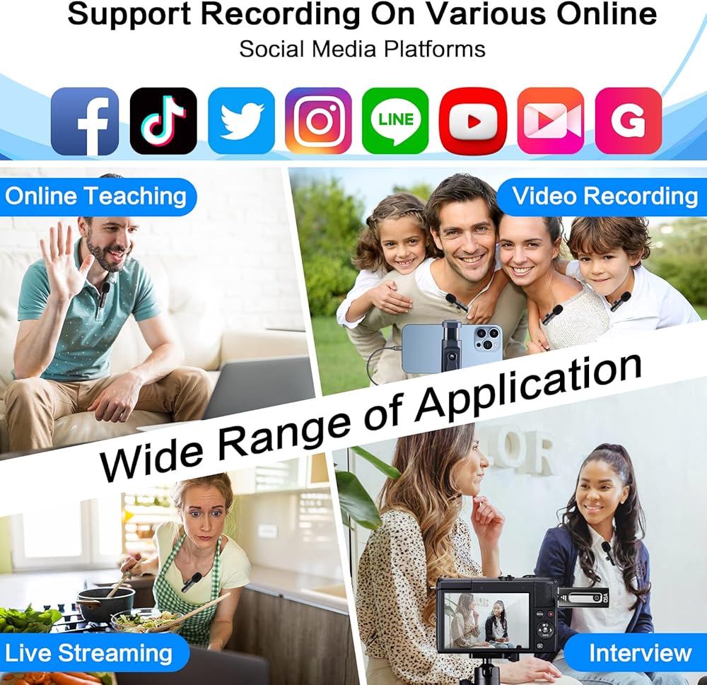 نقل لمسافات طويلة ووقت عمل طويل: يحتوي جهاز إرسال الميكروفون اللاسلكي على بطارية مدمجة قابلة لإعادة الشحن مع وقت عمل يصل إلى 5-6 ساعات. (يمكن شحنه في نفس الوقت). مسافة فعالة خالية من العوائق تبلغ 65 قدمًا في ناقل الحركة تسمح لك بالتحرك. مثالي لتسجيل فيديو Youtube / Vlog، وFacebook / TikTok Live Stream، والمقابلات، والكنيسة، والعروض التقديمية، ومؤتمرات الفيديو، وما إلى ذلك