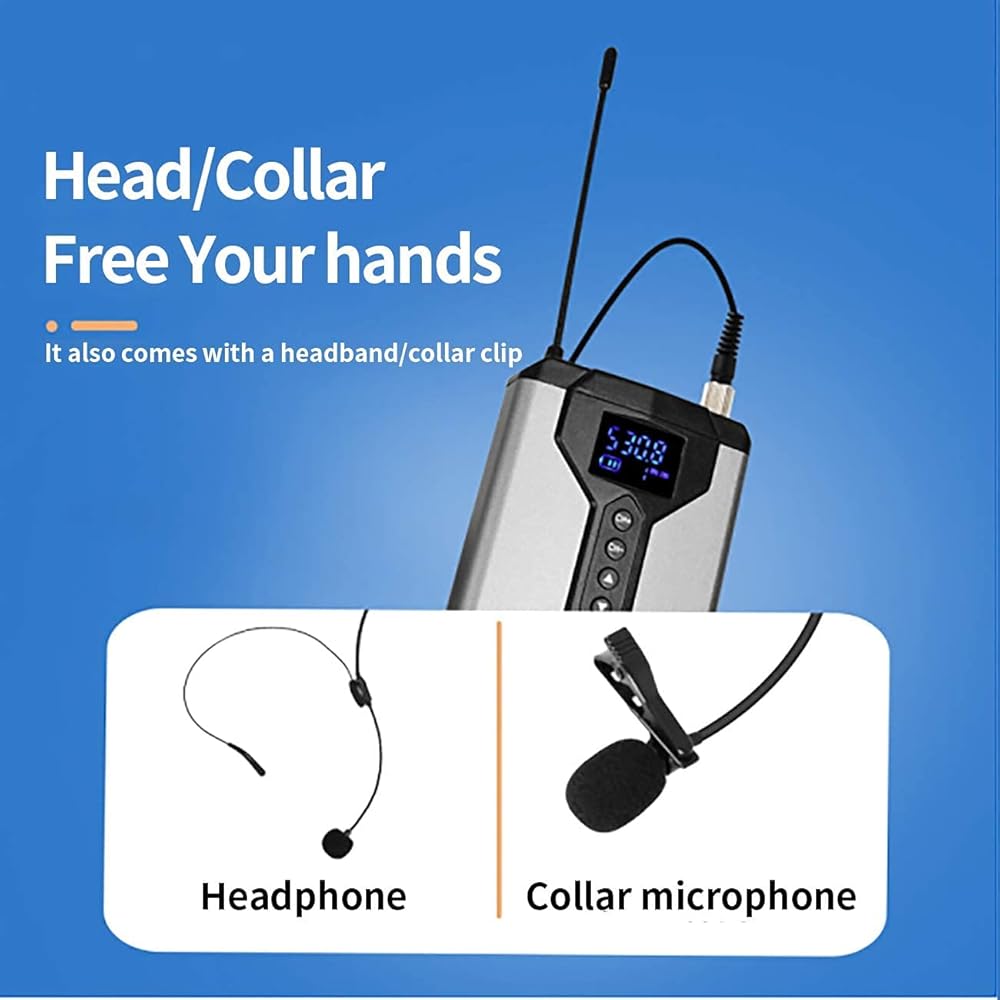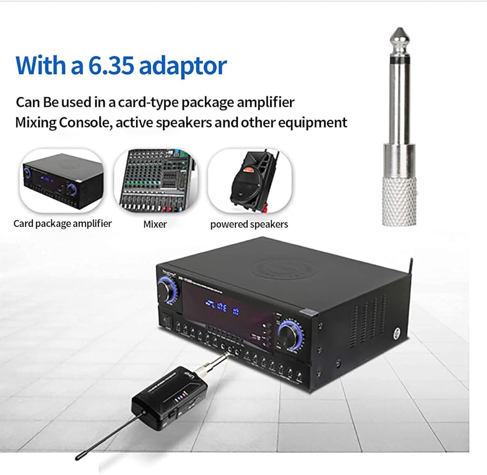 • يحتوي نظام ميكروفون سماعة الرأس اللاسلكي هذا على مخرج 6.35 مم (1/4 بوصة)، ويمكنك توصيله بأي من أنظمة الصوت الخاصة بك مثل وحدة التحكم في الخلاط ومكبرات الصوت وأجهزة الكاريوكي مع مدخل 6.35 مم (1/4 بوصة) (لا يوجد خط في أو مساعد في).