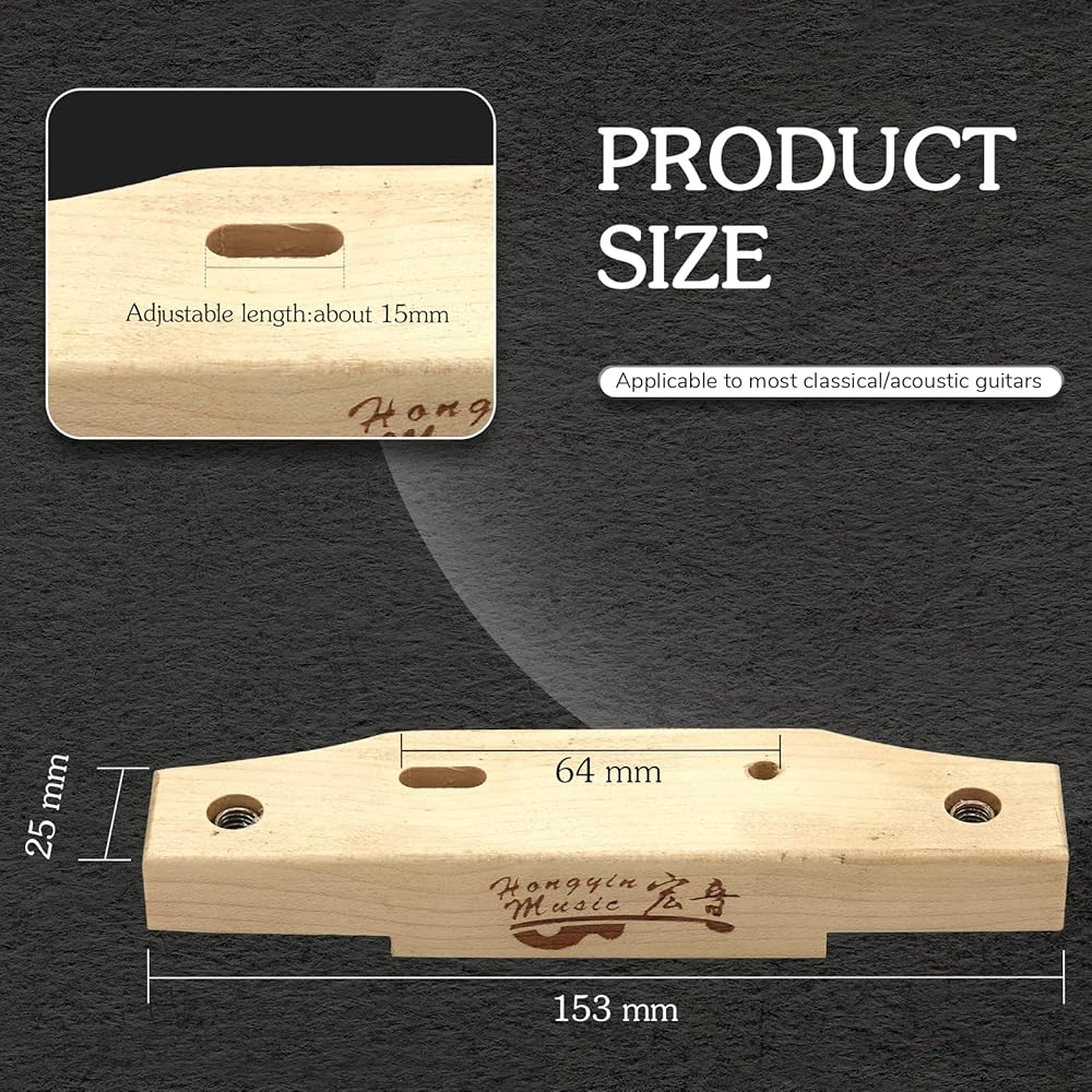Scope of Application: This is a set of guitar bridge clamp repair tools that can be used for different types of bridges. 36 inch to 43 inch acoustic guitars can be used if there are string pin holes on the bridge. It is a necessary tool for professional guitar maker shops and family storest