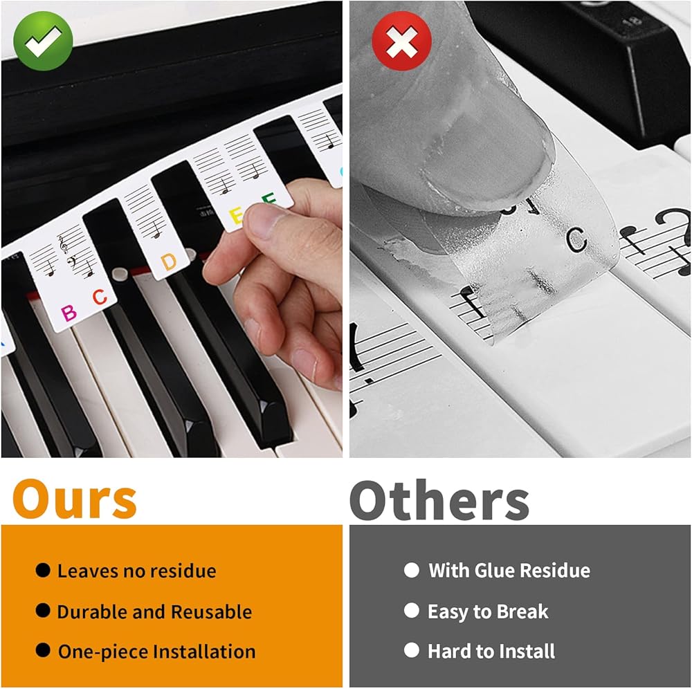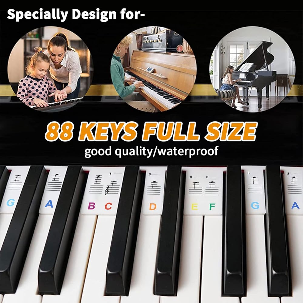 Colorful Piano Note Labels: Each note on the piano keyboard stickers are coded in clear bright color, is easy to read, and focus attention. For children and beginners, it helps to identify and remember them quickly and easily. It's your powerful helper in the process of piano learning.