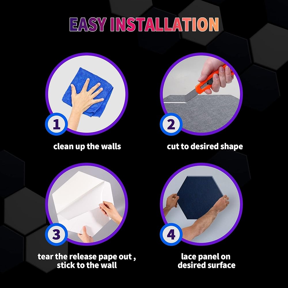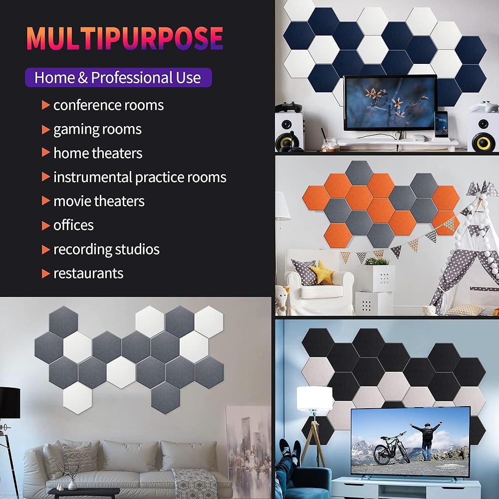 امتصاص صوت فائق: لوحات صوتية كبيرة الحجم مقاس 14 × 12 × 0.4 بوصة مع تقنية امتصاص الصوت المتقدمة، تعمل لوحاتنا على القضاء على الصدى والعكس بشكل فعال، مما يوفر لك صوتًا واضحًا تمامًا. استمتع بكل إيقاع ونوتة وكلمة دون تشويه أو تشويش.