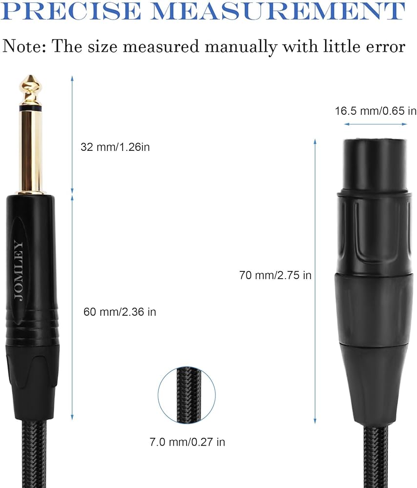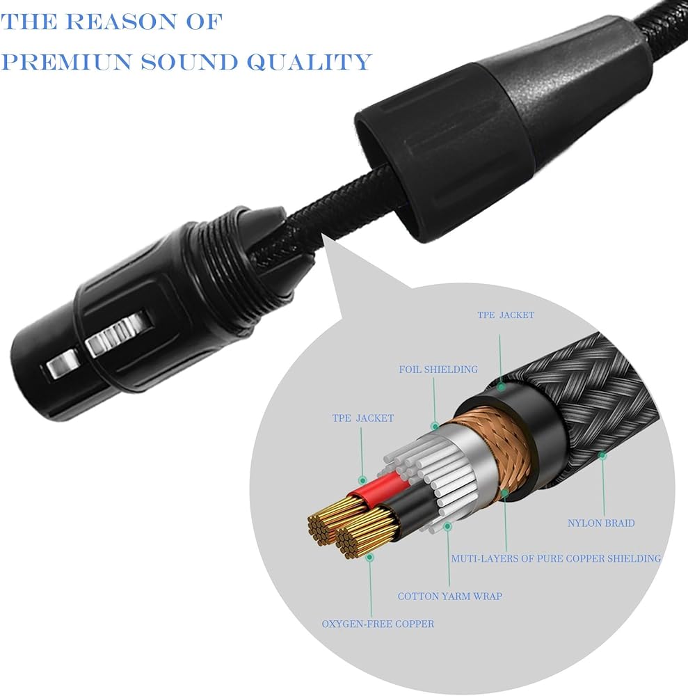 • [المتانة] جاكيت مجدول من المطاط والنايلون عالي التحمل لحماية كابل الميكروفون، القطر الخارجي لكابل 1/4 إلى XLR هو 6.0 مم (0.24 بوصة)، مصنوع من مادة البولي إيثيلين العازلة التي تحسن الاستجابة عالية التردد، قوية ومرنة و متين.