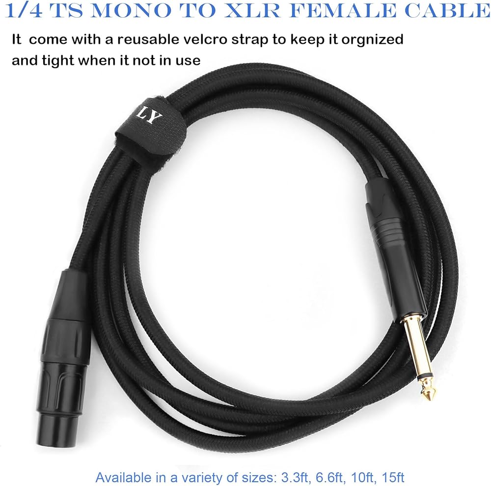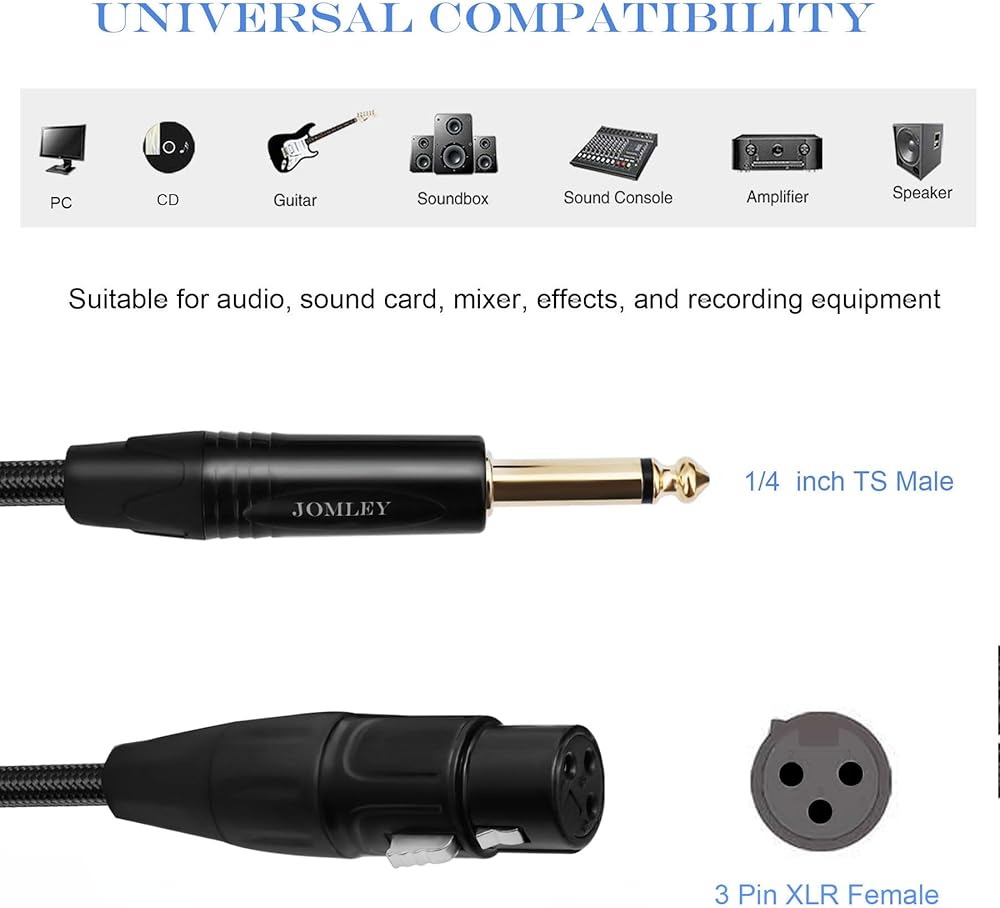 JOMLEY أنثى XLR إلى 1/4 بوصة TS كابل أحادي، 6.35 مم أحادي إلى XLR أنثى جاك كابل ميكروفون XLR غير متوازن، نايلون جديلة أنثى XLR إلى 1/4 كابل للميكروفون الديناميكي - 3.3 قدم / 1 متر