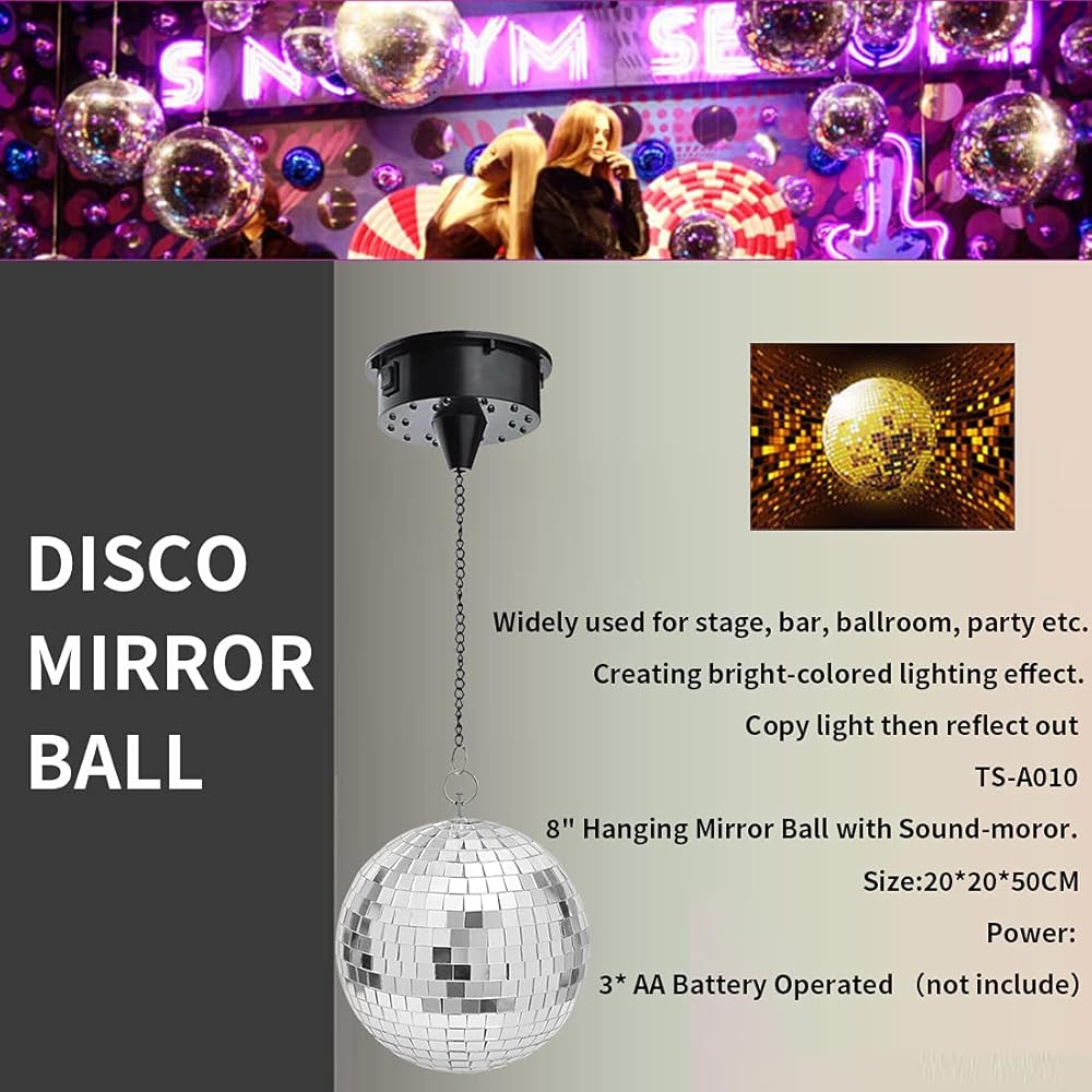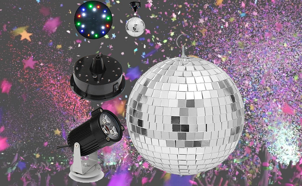 1. كرة مرآة دوارة ومصابيح LED تعمل باستمرار