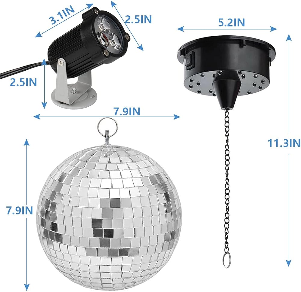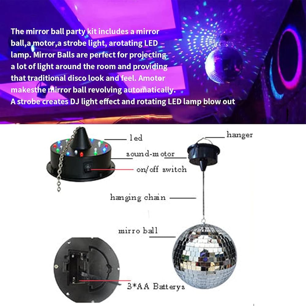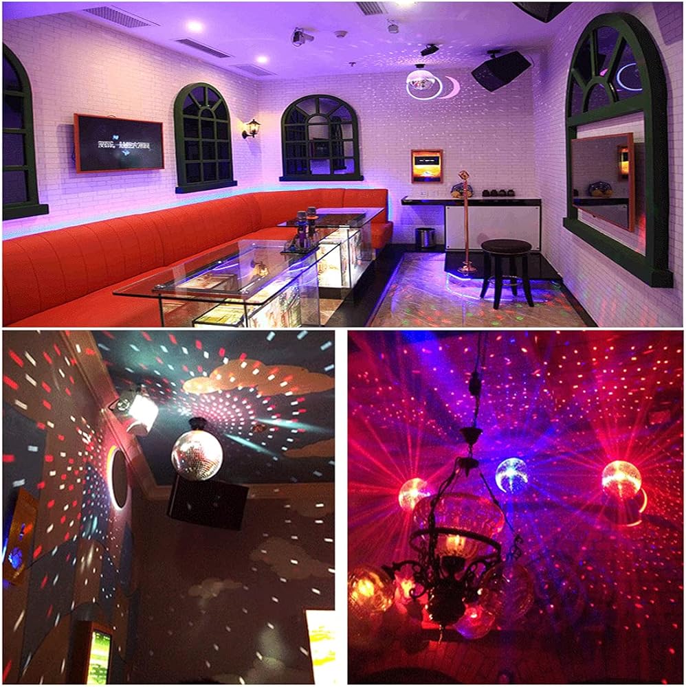 II. كرة مرآة دوارة وتنشيط صوت LED (تضيء مصابيح LED في الوقت المناسب مع الموسيقى)