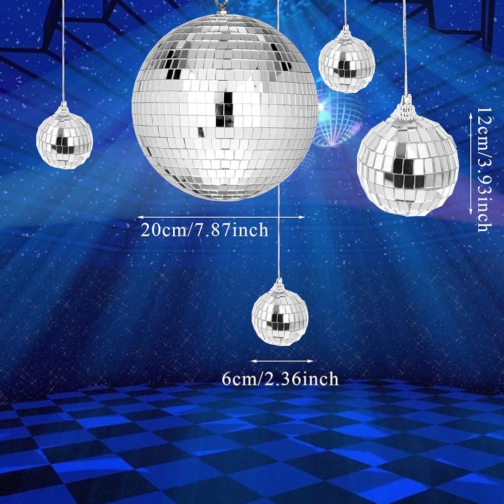 • 【محتويات العبوة】ستحصل على 8 كرات ديسكو خفيفة الوزن ومتينة بأحجام مختلفة. واحدة بقطر 20 سم / 7.87 انش، وواحدة بقطر 12 سم / 4.72 انش، وستة بقطر 6 سم / 2.36 انش.