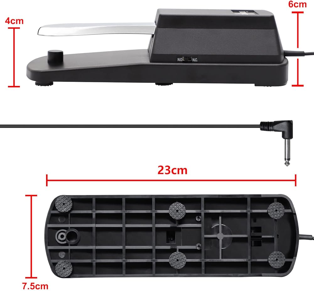 هذه دواسة استدامة عالمية تحتوي على مفتاح قطبي على الجانب، مما يجعلها مناسبة لمعظم البيانو الرقمي ولوحات المفاتيح وأجهزة المزج ومعدات ميدي مع مقابس 6.35 ملم من مختلف الشركات المصنعة.