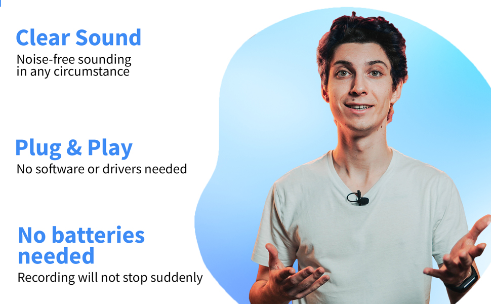 يوفر ميكروفون لافالير صوتًا واضحًا مقارنةً بالميكروفون المدمج، مما يقلل من ضوضاء التسجيل.