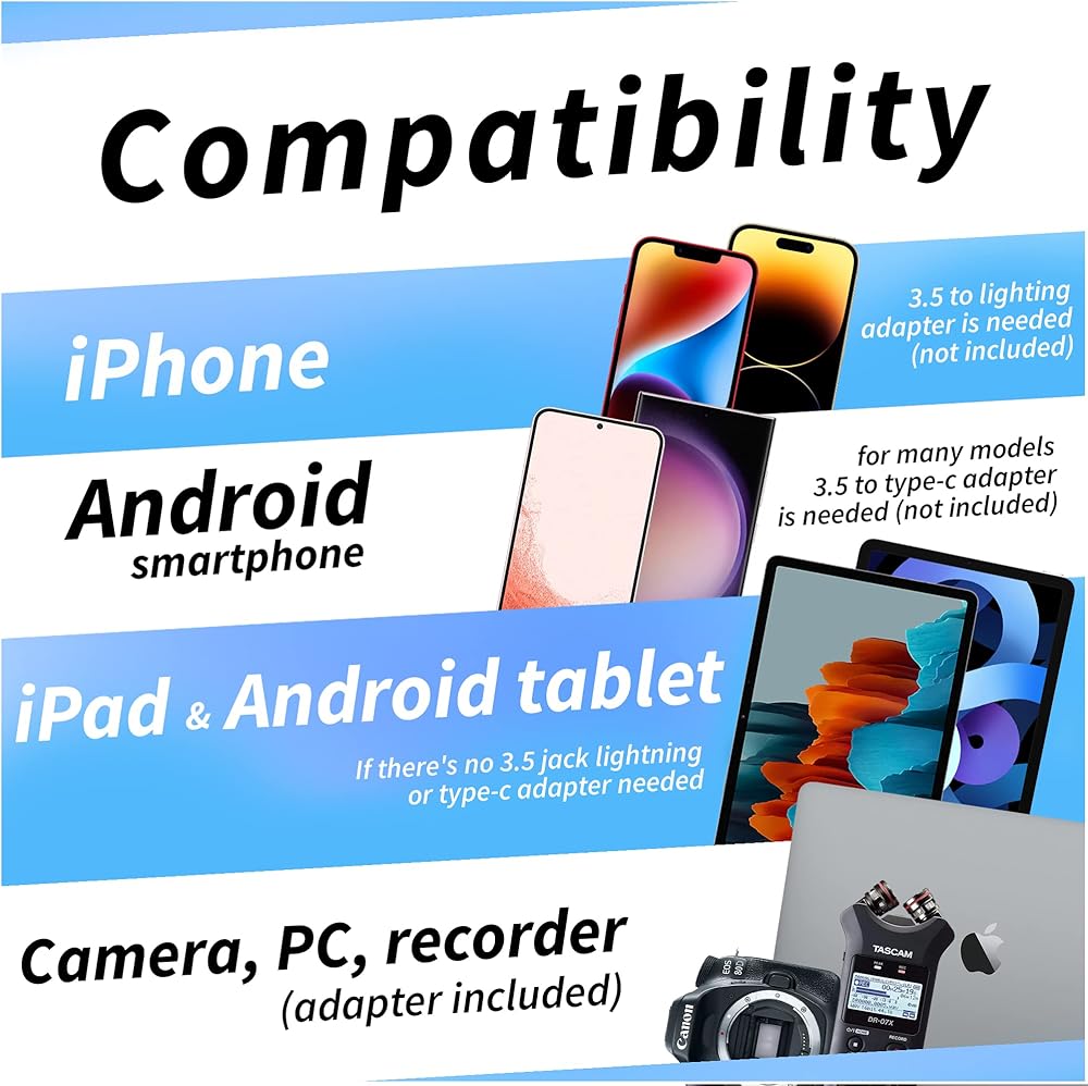 توافق عالمي. لأجهزة اندرويد والكاميرات وكاميرات الفيديو ومسجلات الصوت والتابلت واللاب توب وايفون (المحول غير متضمن).