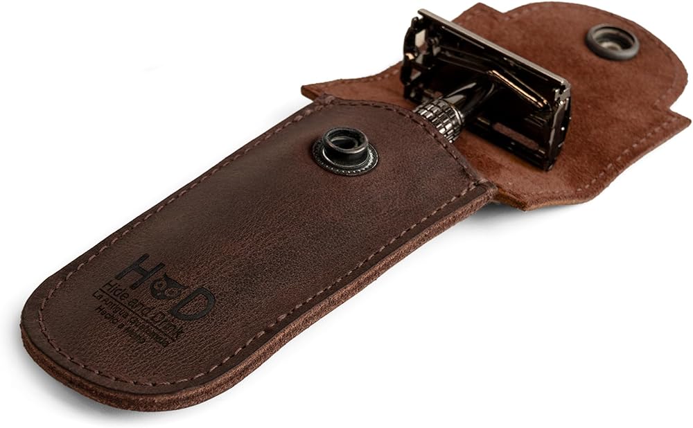 متماسكة ومتينة بدقة: حقيبة الحلاقة الجلدية للاختباء والشراب مصنوعة من جلد محبب بالكامل، وهو أفضل حبيبات الجلد. يضمن استخدام هذه الحبوب المعينة أن تدوم العلبة مدى الحياة لحماية الشفرة من العناصر بالإضافة إلى حمايتك. تمت خياطة العلبة بدقة ويتم حرق أي أطراف سائبة حتى لا يحدث أي تفكك.