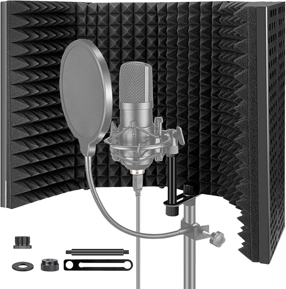 [محمول وقابل للطي]: يتكون درع الميكروفون من 5 ألواح، والتصميم القابل للطي يمنحك مرونة كبيرة عند التخزين أو الحمل. يمكن تعديل درع عزل تسجيل الاستوديو بسهولة مع تصميم قوس يسمح بتعديل الزاوية للحصول على عزل صوت مثالي ويضمن أعلى جودة تسجيل.