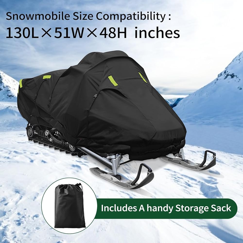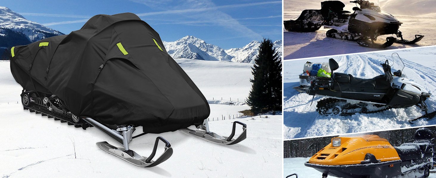 Durable: UV treated, waterproof polyester fabric protect your snowmobile against sun, snow, rain, dirt, pollutants and more; Excellent snowmobile cover for all weather protections