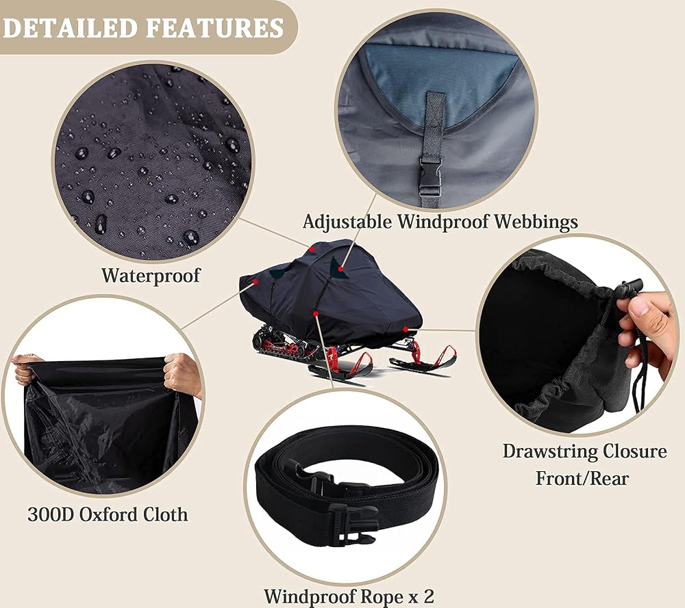[نسيج متين] - غطاء تخزين عربة الثلج مصنوع من نسيج أكسفورد عالي التحمل 420D، جنبًا إلى جنب مع مادة البولي يوريثان المقاومة للماء لجعل الغطاء الواقي أكثر صرامة.