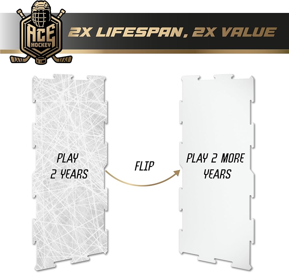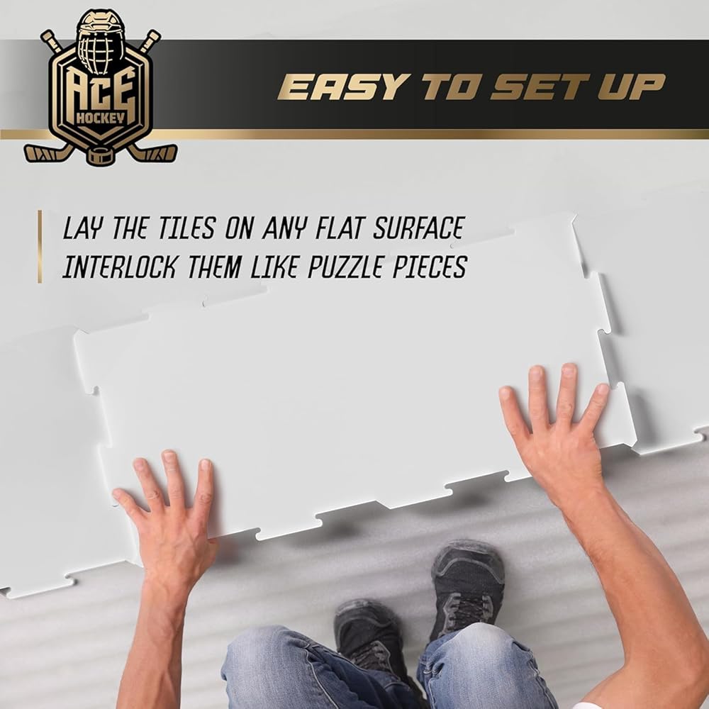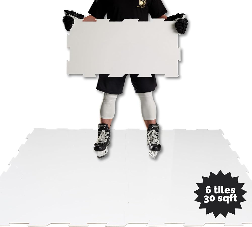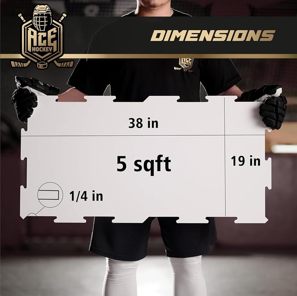 احصل على هذا الشعور بالثلج الحقيقي: تتميز ألواح الأرضية لدينا بسهولة التجميع حتى تتمكن من إنشاء حلبة هوكي الجليد على مستوى عالمي للتدريب في دقائق معدودة معدودة. تحتوي هذه العبوة على 6 بلاطات (30 قدمًا مربعًا)، كل بلاطة بمساحة 5 أقدام مربعة.