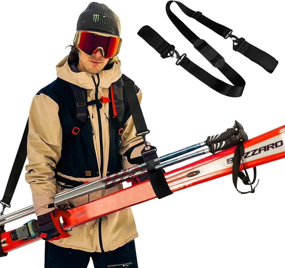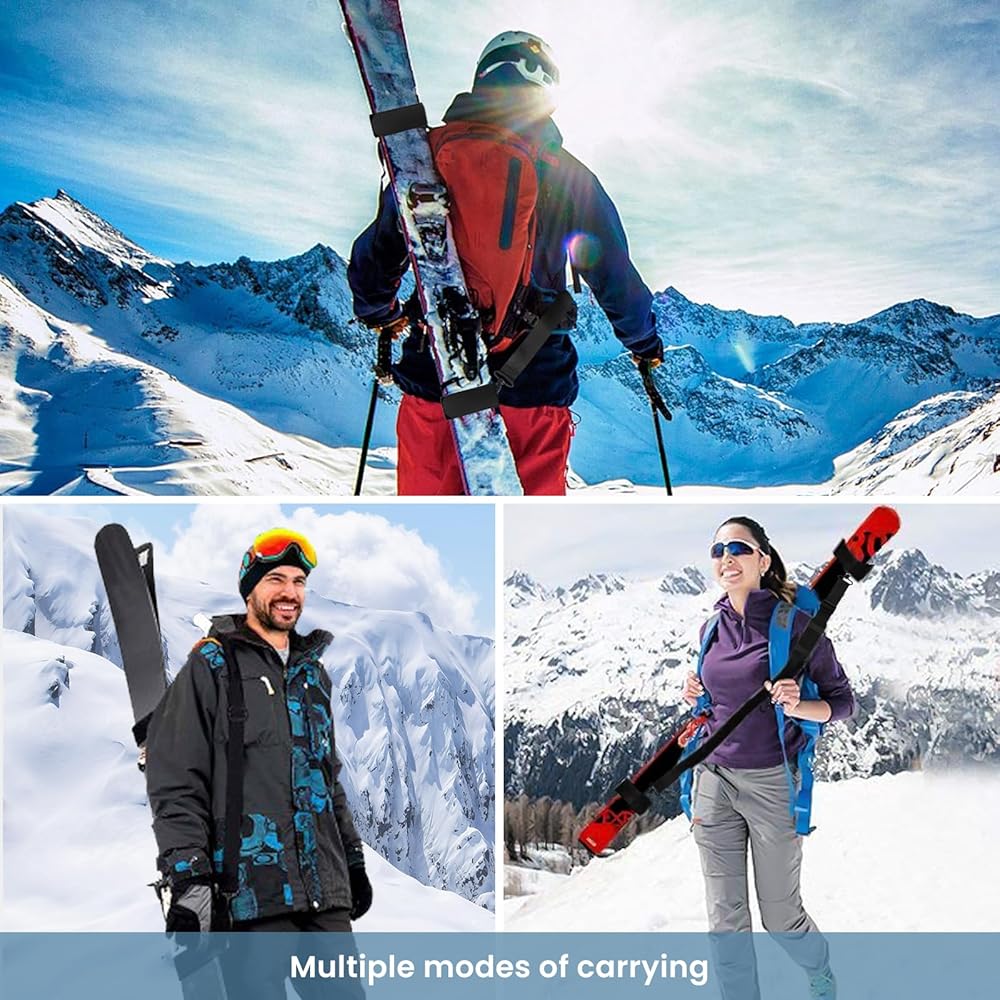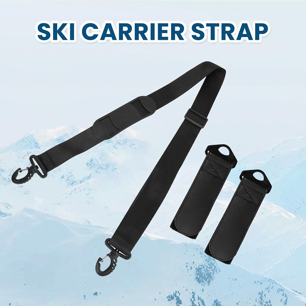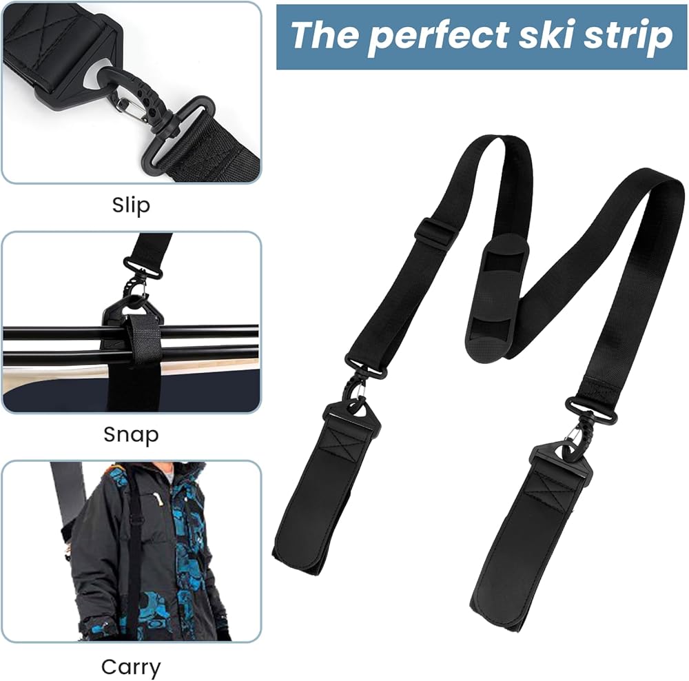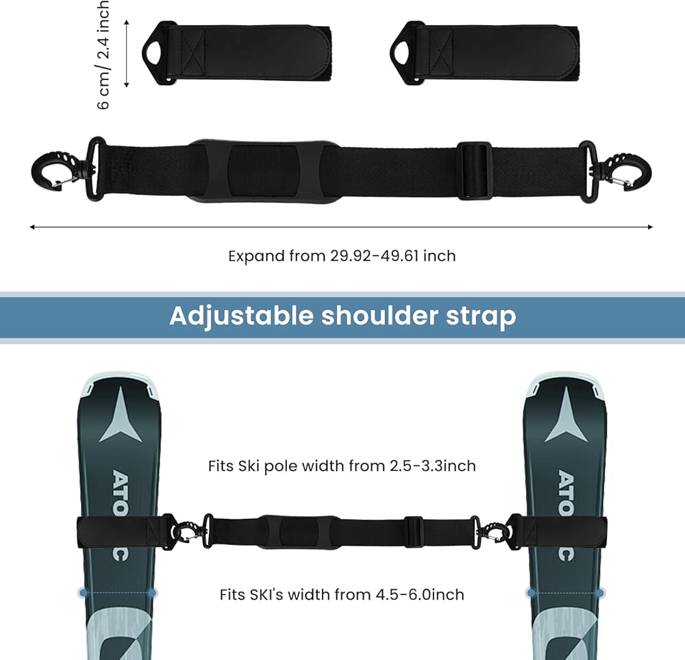 • جودة فائقة وعملية: حزام التزلج وحامل العمود مصنوعان من مادة نايلون محبوكة معززة مع قدرة تحمل قوية. كما أنها مجهزة بوسائد حبيبية غير قابلة للانزلاق، بحيث لا تنزلق بسهولة عند تعليق معداتك عليها. تتضمن مشابك تثبيت مزدوجة من النايلون المقوى، واحدة لتثبيت الزلاجات والأخرى لتثبيت الأعمدة وهي عملية للغاية.