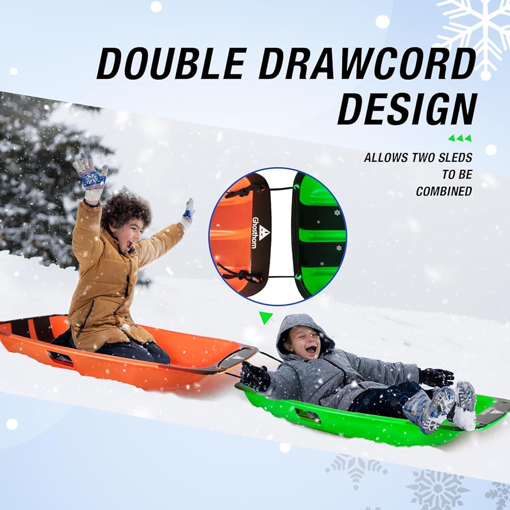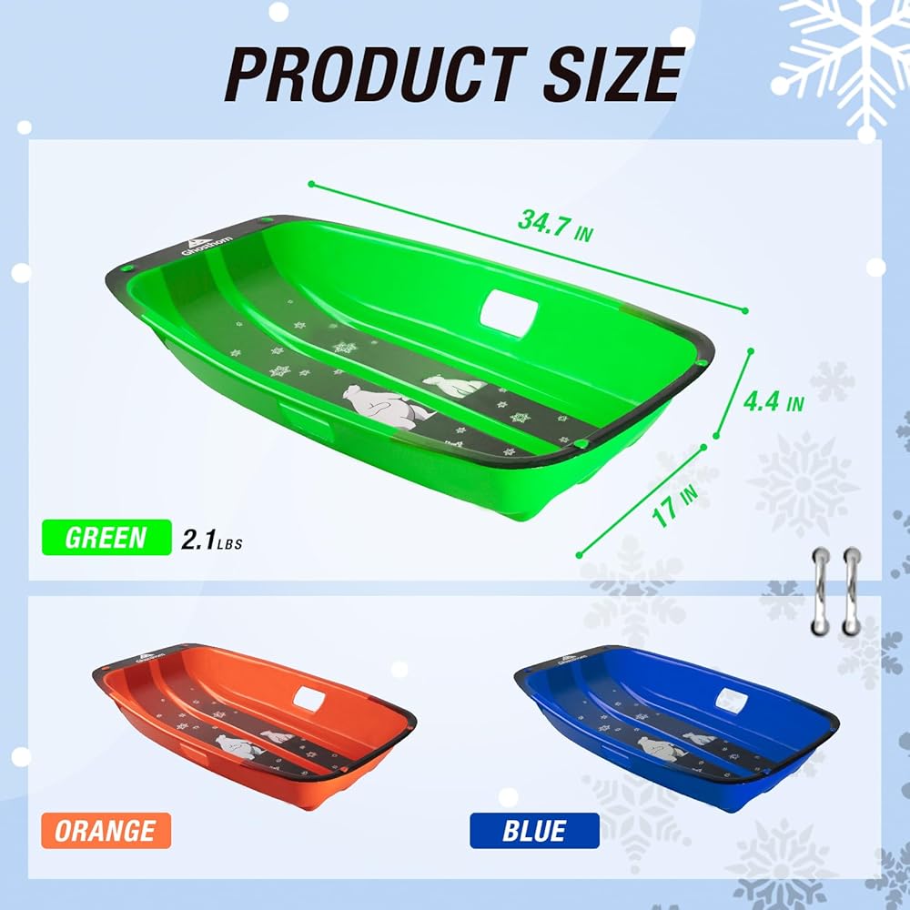 【ترفيه شتوي للأطفال】بسعة وزن تصل إلى 220 كجم، لا يمكن لهذه المزلجة أن تستوعب طفلًا صغيرًا فحسب، بل يمكن استخدامها أيضًا كمزلجة للبالغين. يمكن ربط زلاجتين معًا بحبل، مما يسمح لك ولعائلتك بالاستمتاع بالتزلج.
