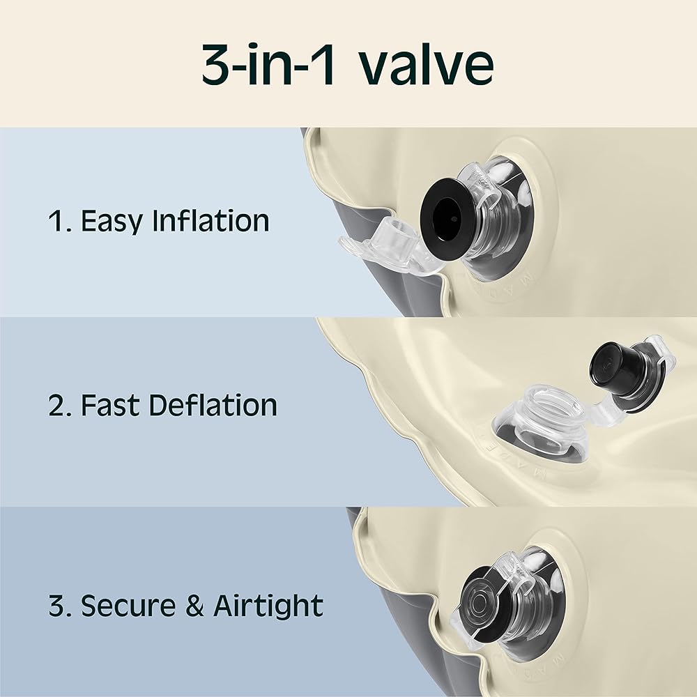 صمام نفخ 3 في 1 يجعل الصمام سهل النفخ 3 في 1 نفخ الأنبوب أمرًا سهلاً. النفخ سهل، تفريغ سريع، وله إغلاق آمن ومحكم عند استخدام الأنبوب.