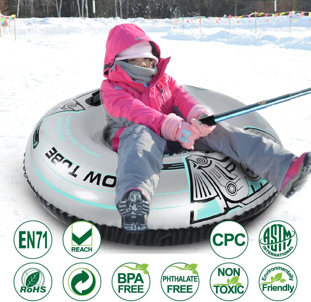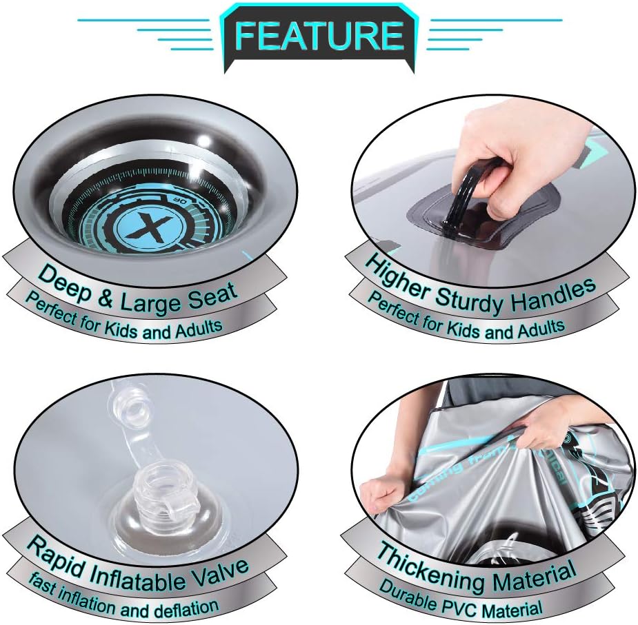 الحجم المثالي: هذا أنبوب الثلج مقاس 48 بوصة (الحجم المنفوخ: 43 بوصة) مثالي للأطفال والكبار ويستخدم ألوانًا مختلفة عن المنتجات الأخرى: الفضة الميكانيكية (لون المواد الخام، وليس لون الطباعة)، والأزرق الطاقة والغامض أسود، للتزلج، ألعاب الثلج، لعالم الخيال العلمي أو الحفلات ذات الطابع الميكانيكي المستقبلي، ستكون الشخص الأكثر جاذبية في هذا الشتاء.