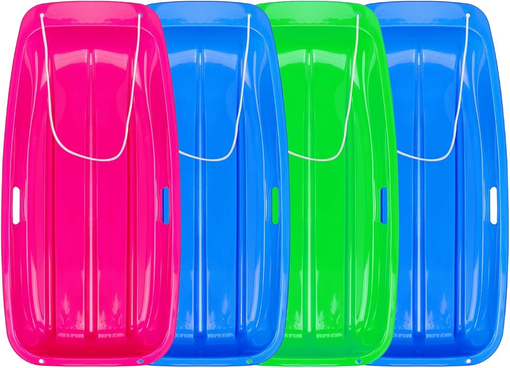 • 【Thoughtful Design】The bottom of this plastic sled is designed with an accelerated convex surface to make sliding smoother. Features a handle and drawcord for safe gliding and maximum control. The sleds are brightly colored and stand out on the snow.