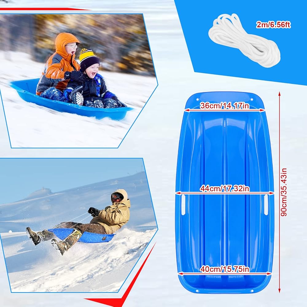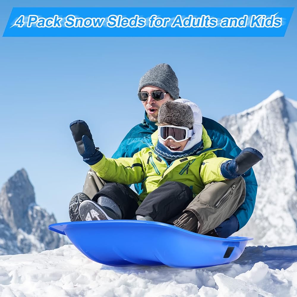 • 【Snow Sleds for Adults and Kids】You will get 4 plastic snow sleds, 4 ropes. The size of each snow sled is 35" x 17" x 5". Our product also comes with 4 cushions. The size of the mat is 18x18inch. The sled can accommodate one adult and one child, or two to three children. Let you and your children experience unlimited fun in winter outdoor skiing.