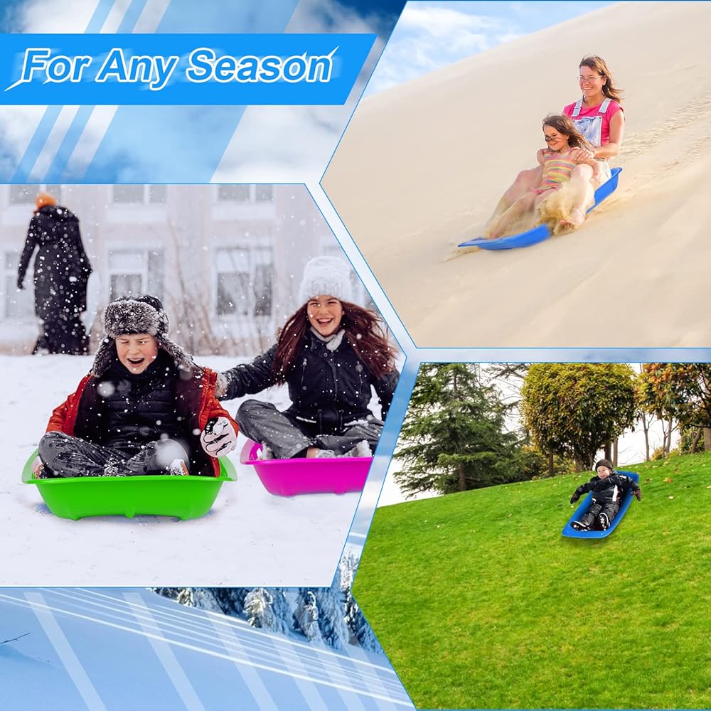 4 عبوات من زلاجات الثلج البلاستيكية مقاس 81.28 سم × 43.18 سم مع وسائد وحبال سحب على المنحدرات لعبة زلاجات شتوية خارجية (وردي، أخضر، أزرق)