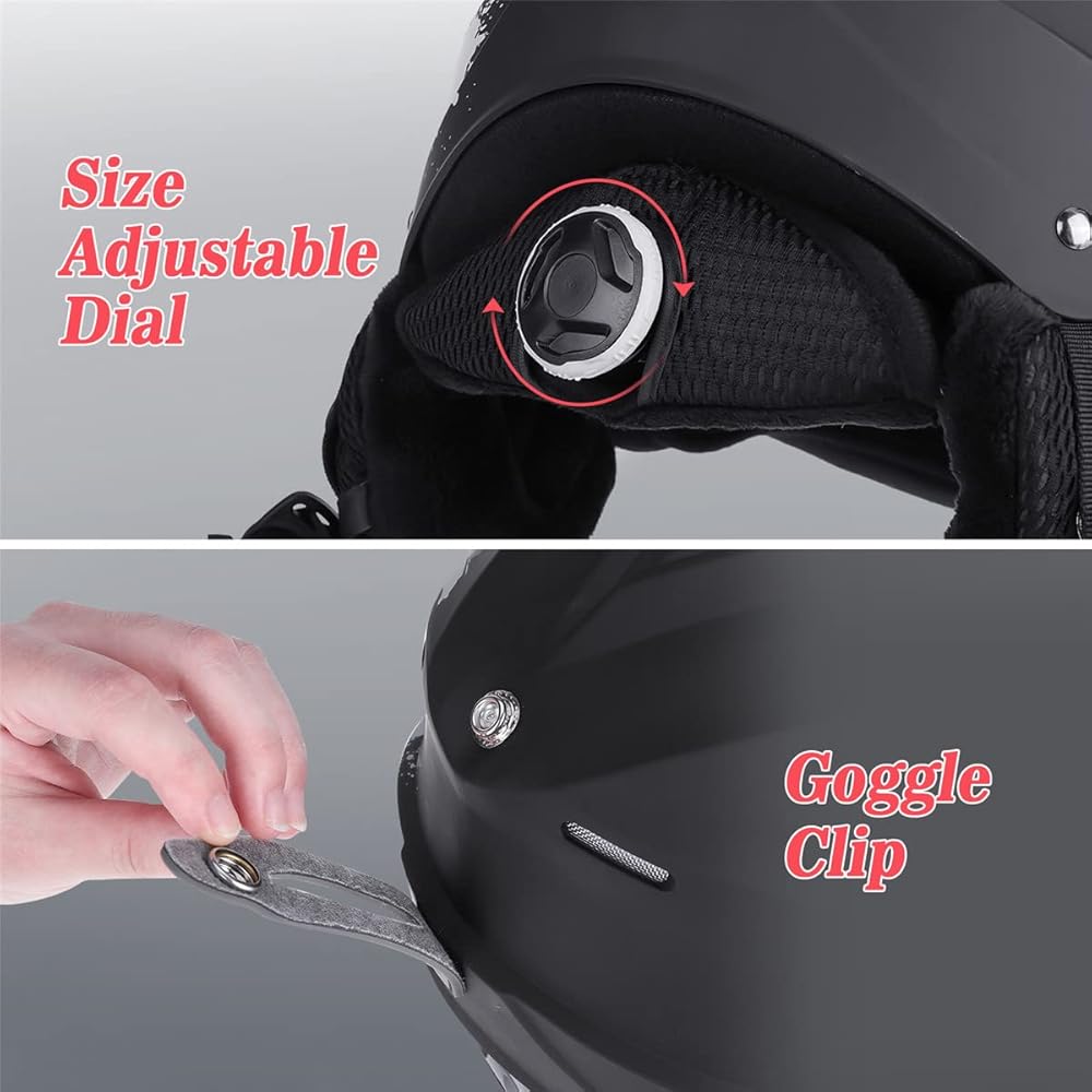قرص تعديل المقاس مع قرص تعديل المقاس على الجزء الخلفي من خوذة التزلج، يمكنك ضبط المقاس عن طريق تدوير القرص الصلب، وإضافة قبعة تحت الخوذة وفقا لاحتياجاتك. بطانة ناعمة على حزام الذقن القابل للتعديل حتى تتمكن من إحكامه بكل راحة.