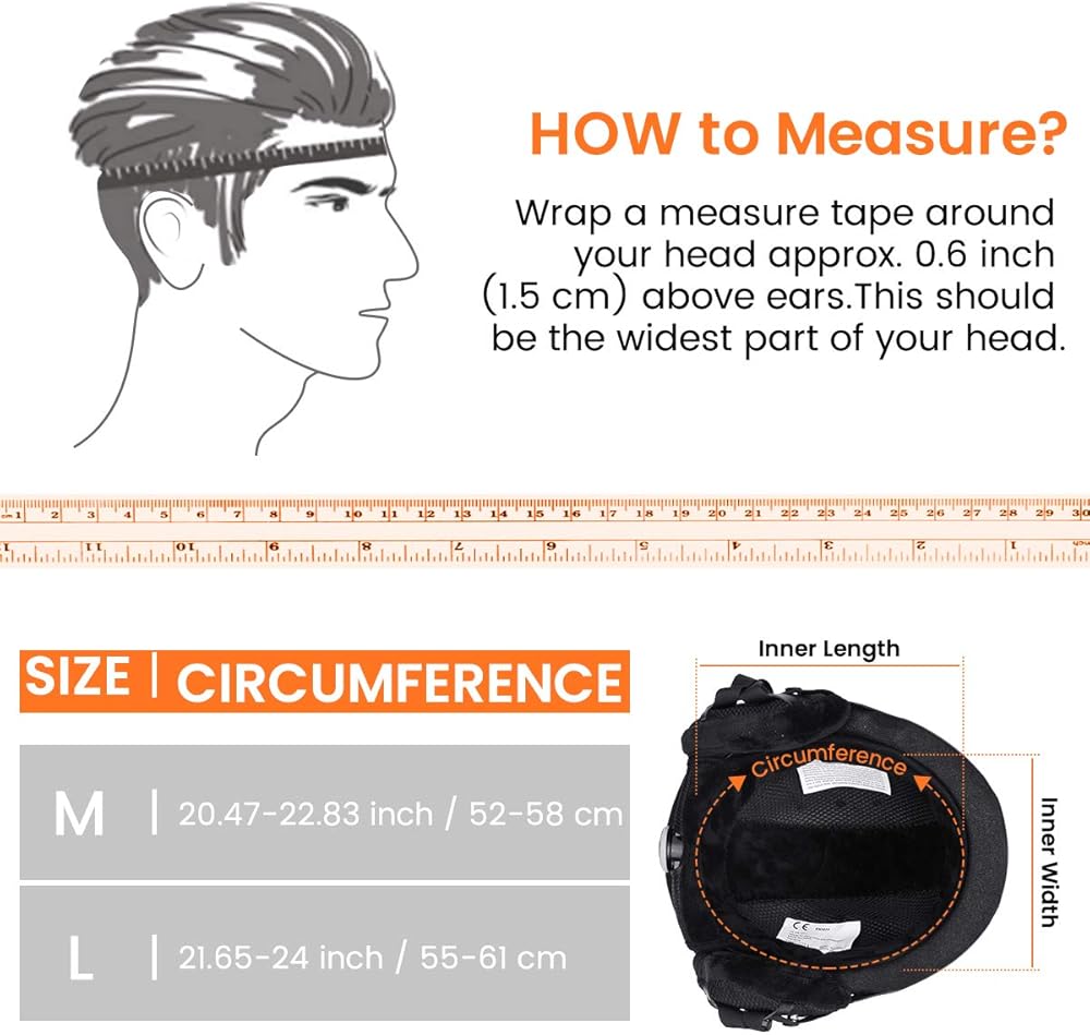 المقاس: L مناسب للبالغين (أكثر من 18 سنة) مع محيط الرأس 58-61 سم، للرجال والنساء والشباب