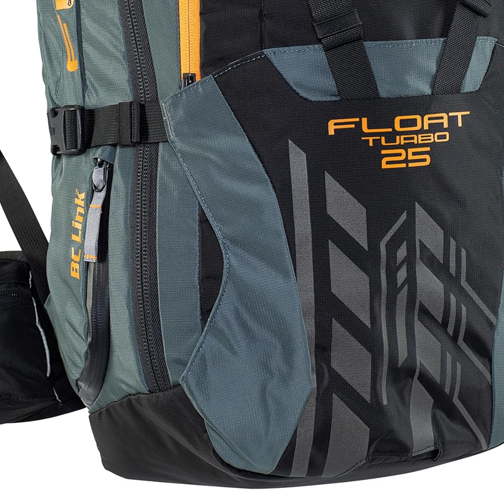 تطفو على الماء 25 TURBO مجموعة الوسائد الهوائية الأكثر تقنية خاصة للتزلج على الجبال، مع تنوع وحجم للأيام الكبيرة. حجم العبوة......1.525 بوصة مكعب / 25 لتر (مع النظام) الوزن................6.4 رطل / 2.918 جرام (النظام الكامل مع الأسطوانة الكاملة) .............................5.2 رطل / 2.360 جرام (النظام الكامل بدون أسطوانة) .............................3.7 رطل / 1.698 جم (العبوة فقط) المواد ..... ........330..... نايلون دينير صغير مانع للتمزيق مع طبقة من البولي يوريثان (الرئيسي) .............................420 دينيير نايلون أكسفورد مع طبقة من البولي يوريثان (مناطق التآكل العالية) ..................... بوليستر 200 دنيير (البطانة) سحّابات...............YKK مع غطاء DWR حجم الجذع ... 44.4 – 52.08 سم / أسود/برتقالي