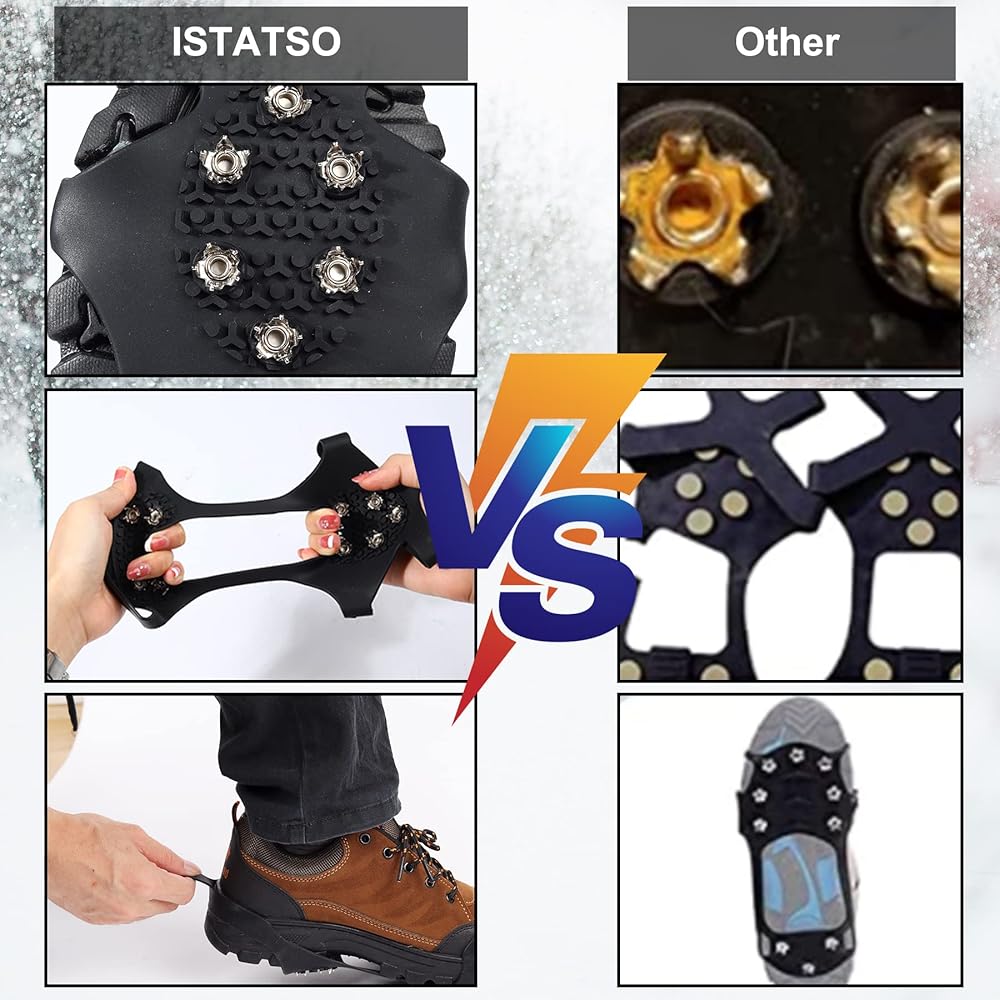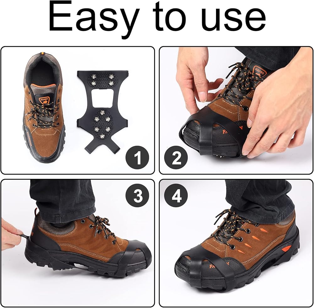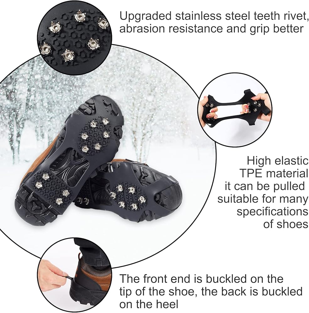 【مسامير فولاذية معززة】مسامير المقبض للأحذية مصنوعة من الفولاذ المقاوم للصدأ 304 المعزز متعدد الاتجاهات، وهو أكثر متانة من المخالب الفولاذية العادية. يحتوي كل مخلب على 6 مخارز في مقدمة القدم و4 مخارز عند الكعب، مما يوفر قبضة أفضل ومقاومة للمواد الكيميائية. يمكنها توفير احتكاك ممتاز على مجموعة متنوعة من التضاريس أو أسوأ الظروف الأخرى، مما يجعل المشي آمنًا.