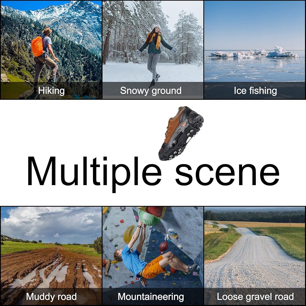 【تصميم عالمي】تتميز المسامير غير القابلة للانزلاق للأحذية باحتكاك قوي ومتانة وقوة ممتازة. ويمكن استخدام مخارز الحذاء هذه للثلج والجليد على التضاريس ذات الزوايا والطرق الجليدية والممرات الجليدية والأسمنت والعشب المبلل، وما إلى ذلك، والتي يمكن استخدامها في الرياضات الشتوية الخارجية ومجموعة متنوعة من الأنشطة مثل المشي لمسافات طويلة وصيد الأسماك والمشي والتسلق والركض وما إلى ذلك.