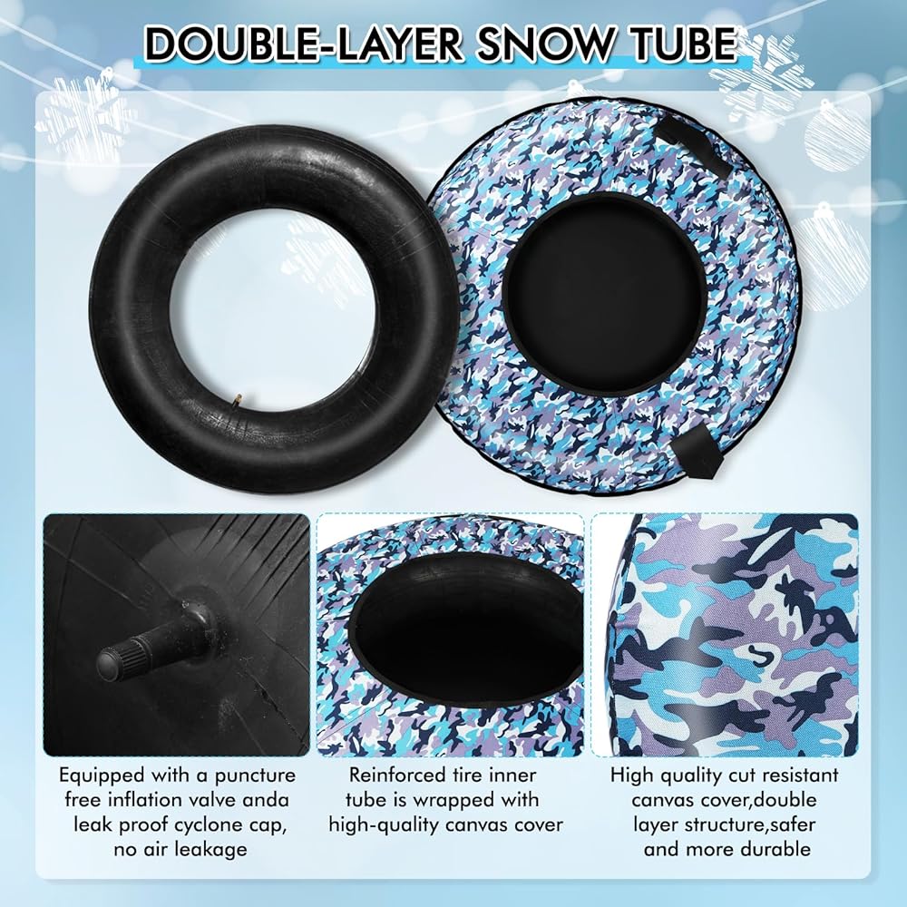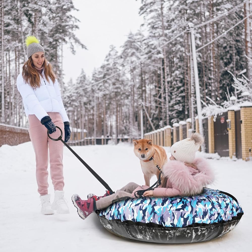 كبيرة جدًا وشديدة التحمل: يمكن لمزلجة الثلج هذه أن تدعم بسهولة 2-3 أشخاص في المرة الواحدة، مع أنبوب ثلج واحد فقط، يمكن للعائلة الاستمتاع بتجربة تزلج رائعة معًا