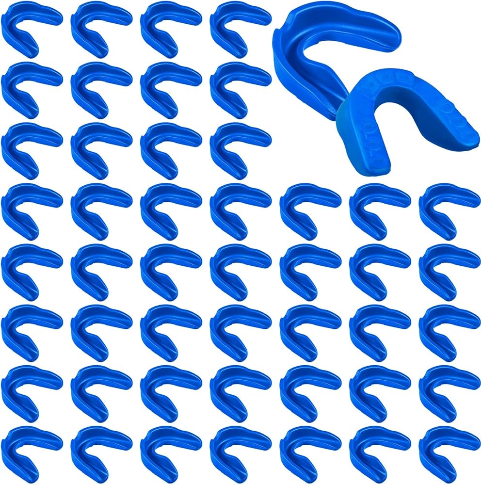Frienda 50 قطعة من واقي الفم لكرة القدم للشباب، واقي الفم الرياضي الأزرق، درع الأسنان، حماية قطعة الفم للبالغين والأطفال الصغار، الملاكمة، كرة السلة، لاكروس، الفنون القتالية، الهوكي