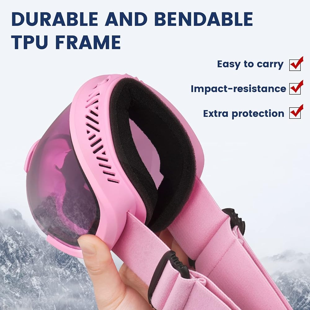 نظارات التزلج ATERCEL، نظارات OTG المضادة للضباب على الجليد للرجال والنساء والشباب، نظارات الثلج بعدسات مزدوجة قابلة للانحناء، حماية 100% من الأشعة فوق البنفسجية