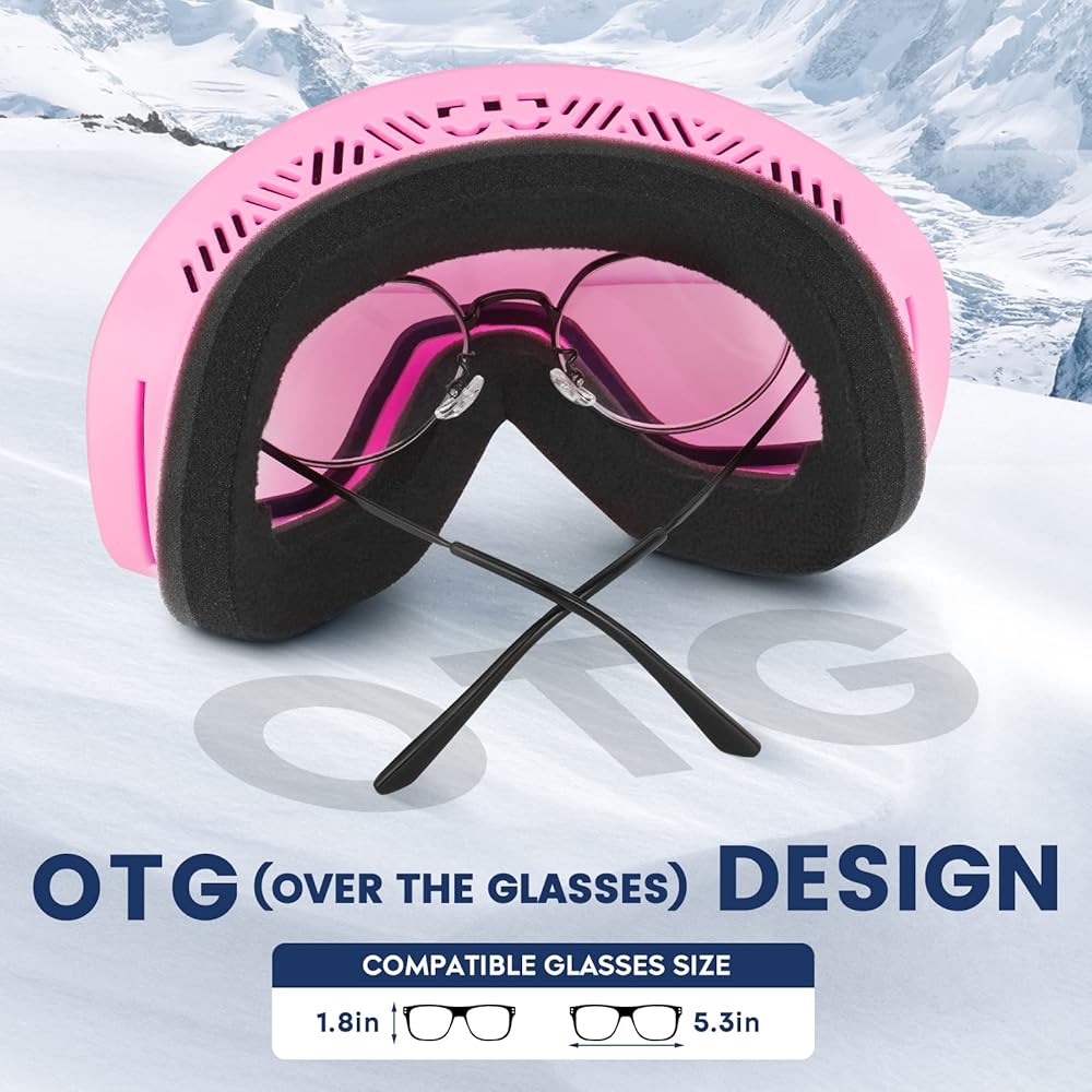 • تصميم OTG (فوق النظارات): تم تصميم نظارات التزلج للسماح بمساحة أكبر أمام العينين لمنع دفع النظارات على الوجه. يمكن أن تناسب النظارات الصغيرة والمتوسطة الحجم بسهولة. لديهم أيضًا حزام طويل جدًا قابل للتعديل، وهو متوافق مع الخوذات. يمكنك شد الحزام أو فكه للحصول على المقاس المناسب لرأسك.