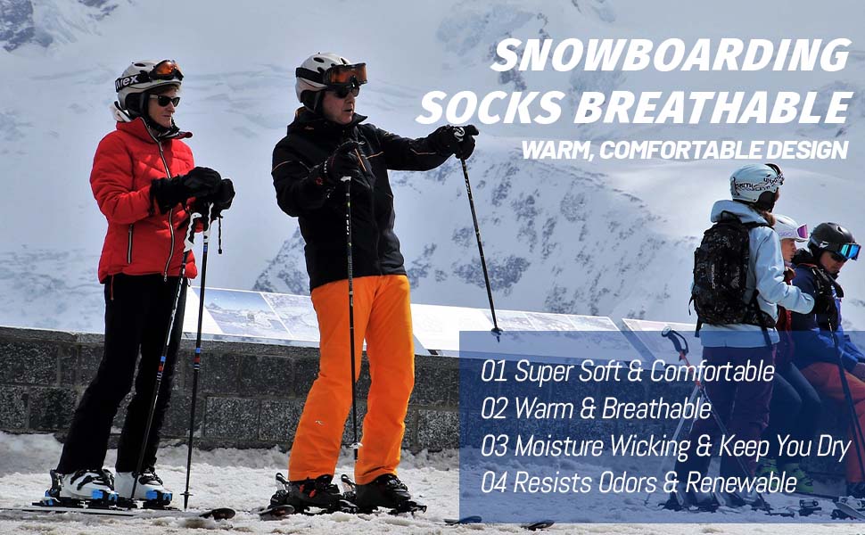 جوارب DarkCom 4 أزواج للرجال والنساء للتزلج مريحة، جوارب تزلج دافئة، جوارب للتزلج على الجليد قابلة للتنفس