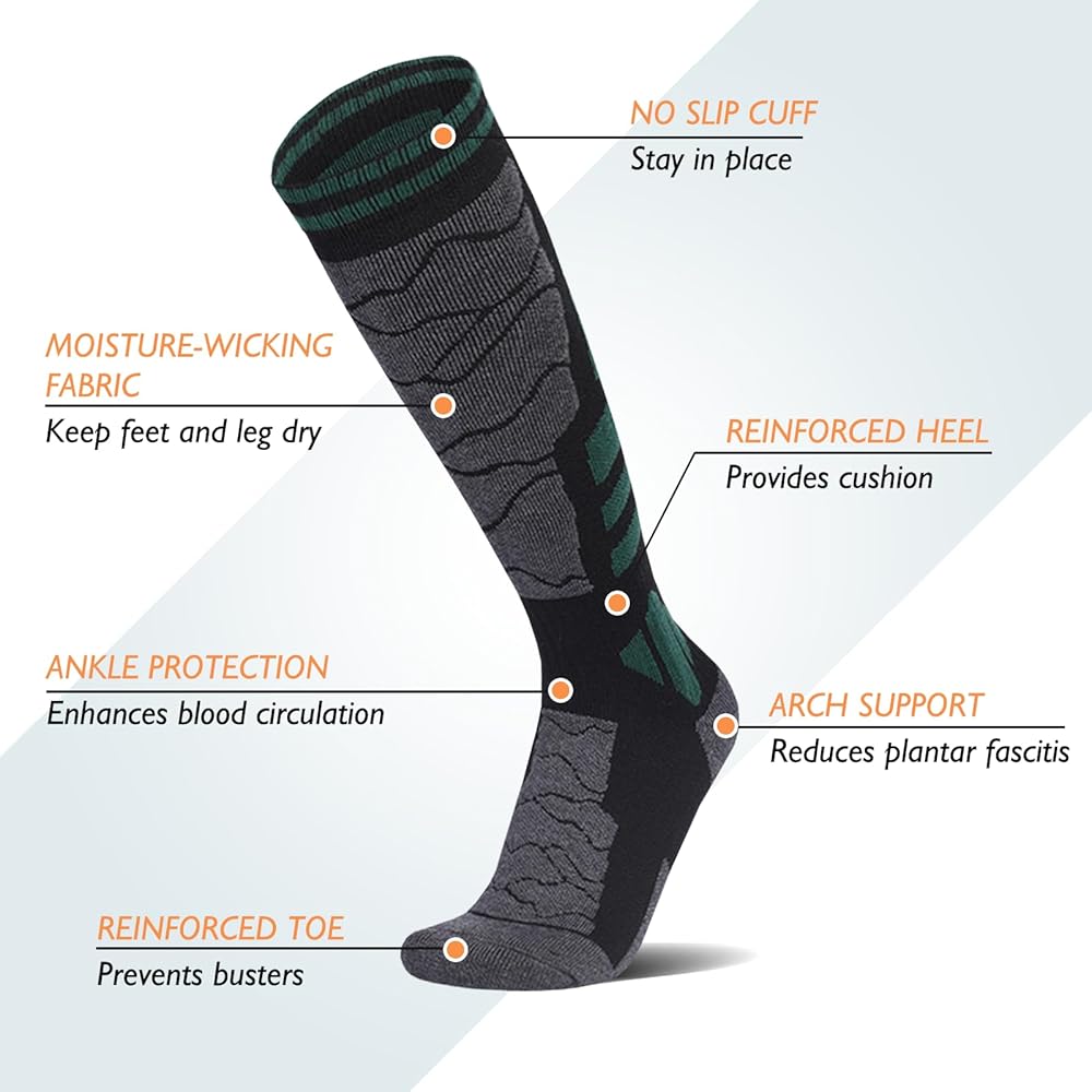 • تم تصميم جوارب التزلج هذه للرجال والنساء بعناية لتكون مرنة، مما يضمن بقاء الجوارب في مكانها. هذه الجوارب الشتوية مثالية لأي مناسبة، سواء كنت تبحث عن جوارب دافئة للنوم في الظروف الباردة، مصممة خصيصًا للتزلج أو التزلج على الجليد أو الصيد أو الرحلات أو ركوب الدراجات أو المشي لمسافات طويلة أو التخييم أو صيد الأسماك على الجليد أو المشاركة في الرياضات الشتوية.