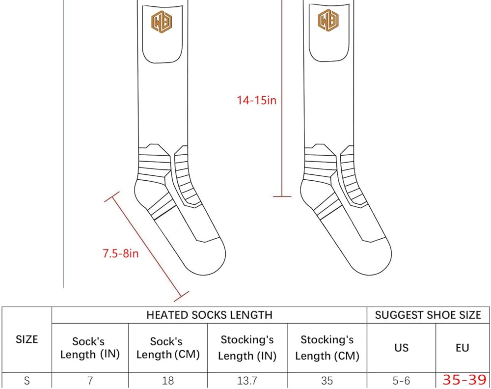 【جوارب دافئة قابلة للغسل في الغسالة واليد】 يمكن غسل الجوارب الساخنة في الغسالة أو يدويًا. كما أنها تأتي مع كيس غسيل حتى لا تقلق بشأن التمزق أثناء الغسيل في الغسالة. نصائح: تذكر إزالة البطارية قبل الغسيل. ضع كابل الشحن مرة أخرى في جيب البطارية قبل الغسيل.