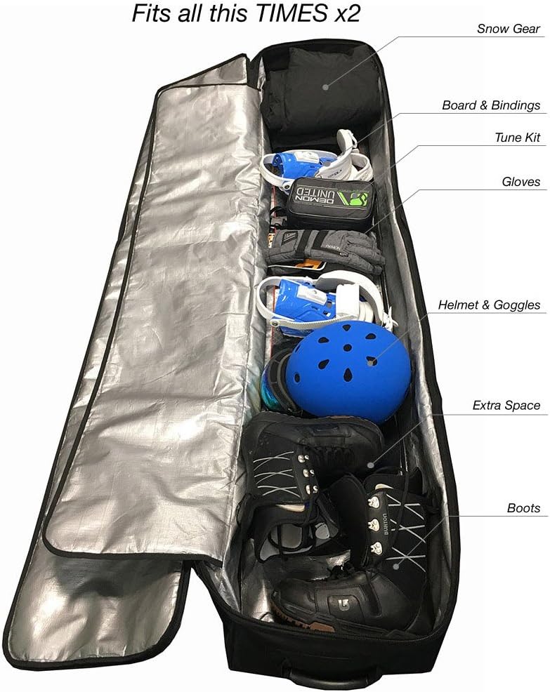 السعة - يمكن لحقيبة التزلج على الجليد هذه أن تناسب كل ما تحتاجه لمغامرتك في التزلج على الجليد × 2. يناسب 2 من ألواح التزلج على الجليد/الربط، زوجان من الأحذية الطويلة والخوذ والقفازات والسترات والسراويل والنظارات ومجموعات اللجام.