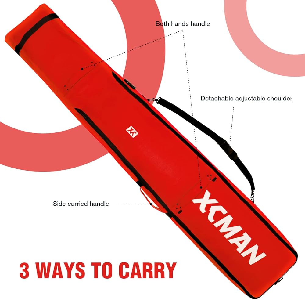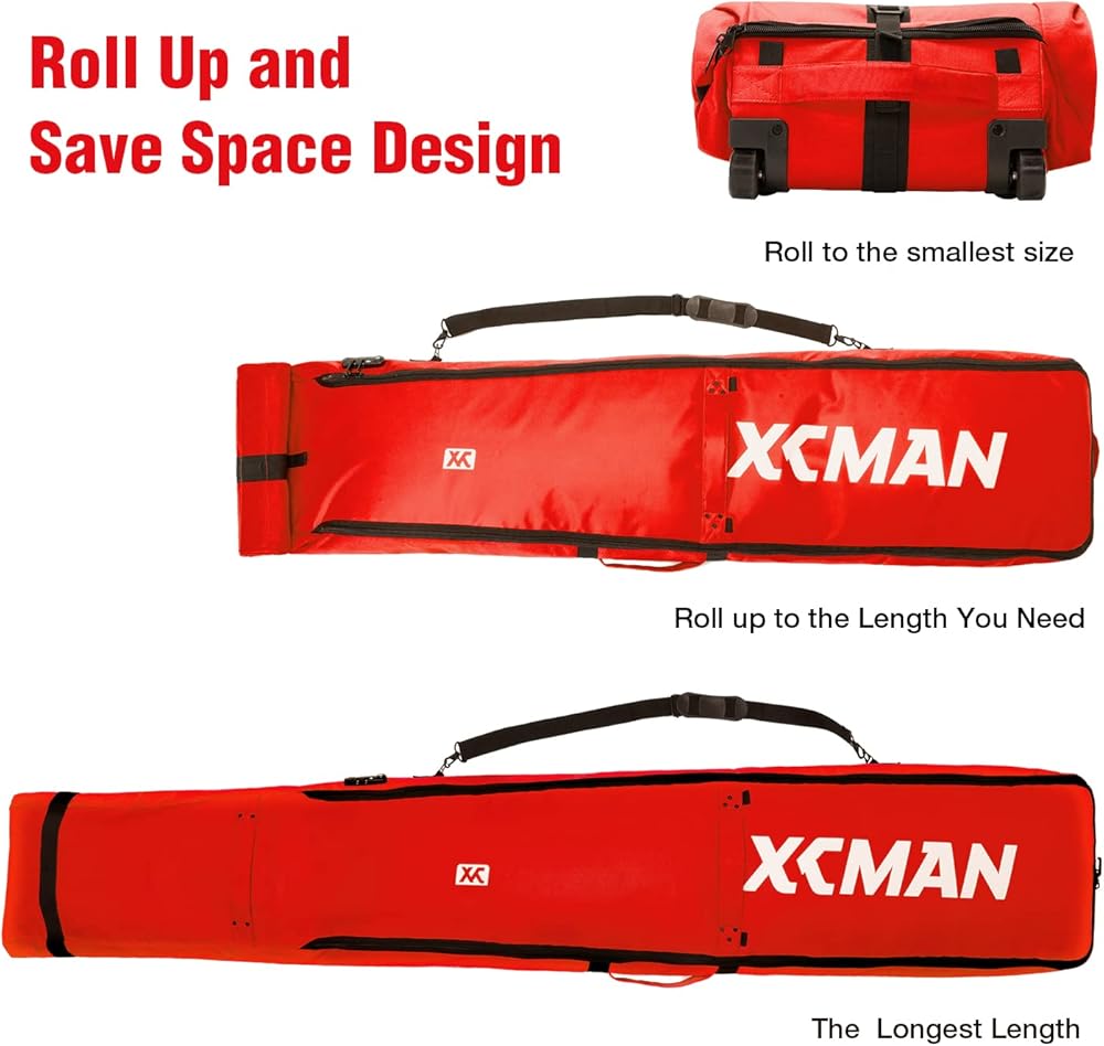 حقيبة عجلات مبطنة على الجليد من XCMAN مع قفل TSA، مثالية لرحلات الطريق والسفر بالطائرة، طول قابل للتعديل من 57 بوصة إلى 74.8 بوصة يناسب زوجين من ألواح التزلج على الجليد
