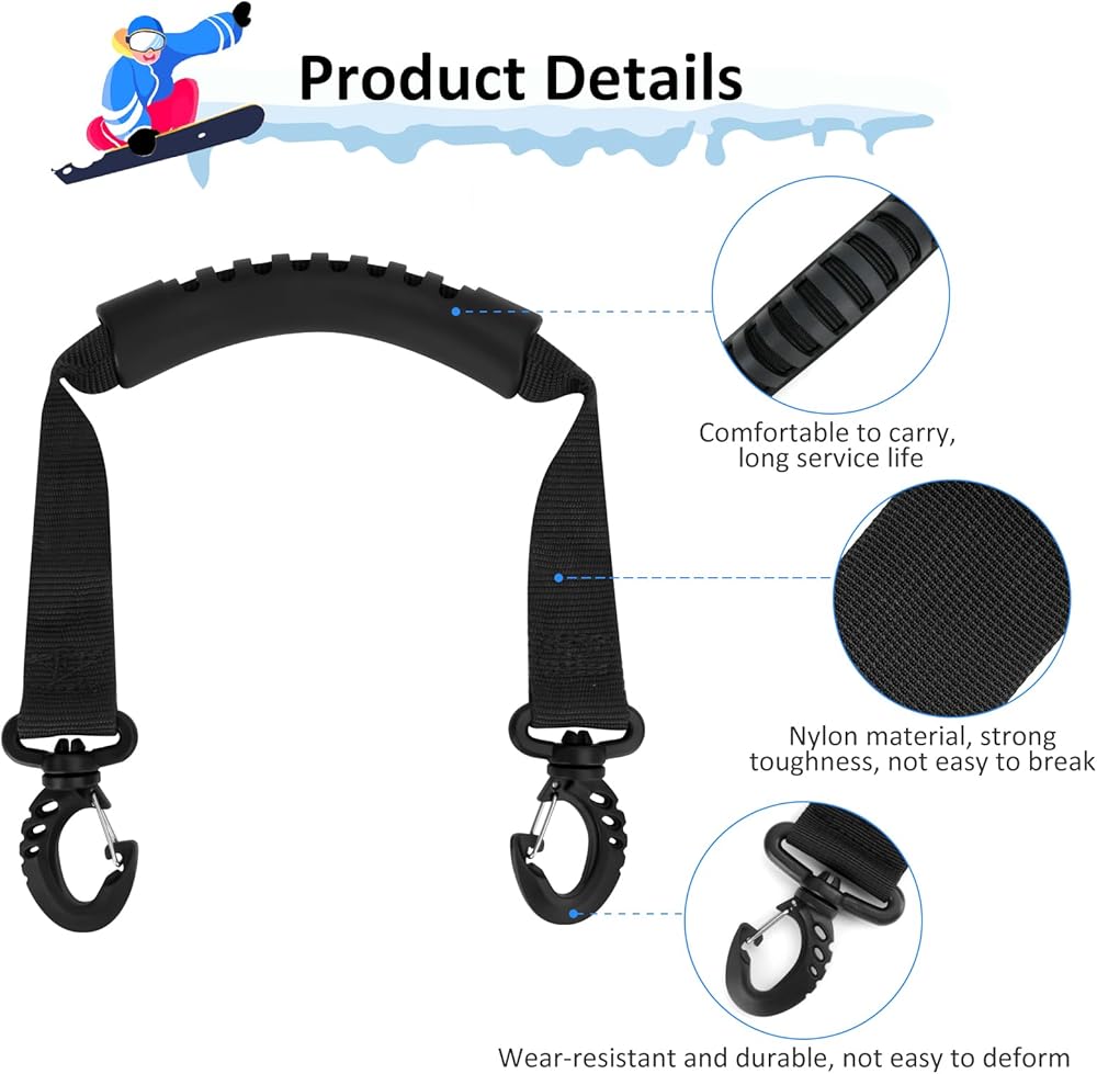 أيدي حرة: حزام تثبيت حذاء التزلج - وهذا يجعل حمل أحذية التزلج على الجليد أسهل، ويبلغ الطول حوالي 45 سم/17.7 بوصة، مما يساعد الأطفال على حمل أحذية التزلج الخاصة بهم بسهولة. عند عدم الاستخدام، يمكن الاحتفاظ بها في حقيبة أو حقيبة لقضاء العطلات لسهولة التخزين.