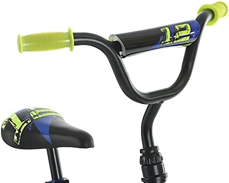 تصميم BMX رائع: تتميز دراجة الأطفال مقاس 12 بوصة باللونين الأزرق والأخضر بمقود أمامي على طراز BMX ومشبك مقعد سريع التحرير يجعل من السهل ضبطه؛ مثالية للأطفال الذين تتراوح أعمارهم بين 3 و 5 سنوات