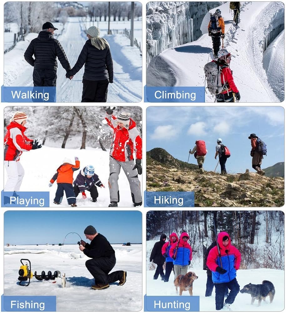 ❄️لا غنى عنه للحالات الجليدية. توفر مقابض الأحذية الثلجية المعدنية الثبات المداس والثبات للمساعدة في منع الانزلاق على الأسطح الزلقة. المسامير مثالية لقطع الثلج، مما يحافظ على استقرارك ويقلل من خطر الإصابات.