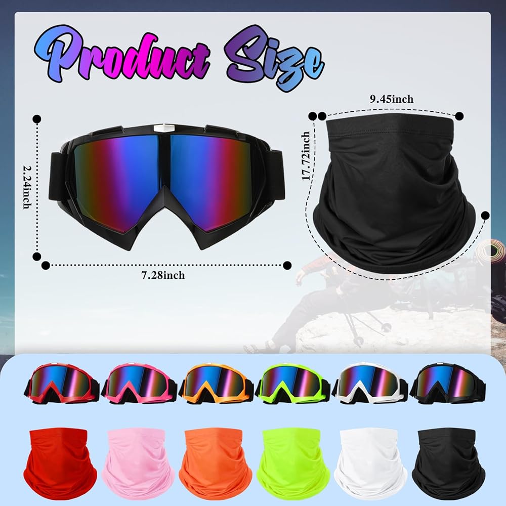 Package Includes: you will receive 6 pieces of motorcycle glasses and 6 pieces of motorcycle face masks, 12 pieces in different colors; They are sufficient in quantity to meet your different outdoor sports needs; You can also give them to others as gifts