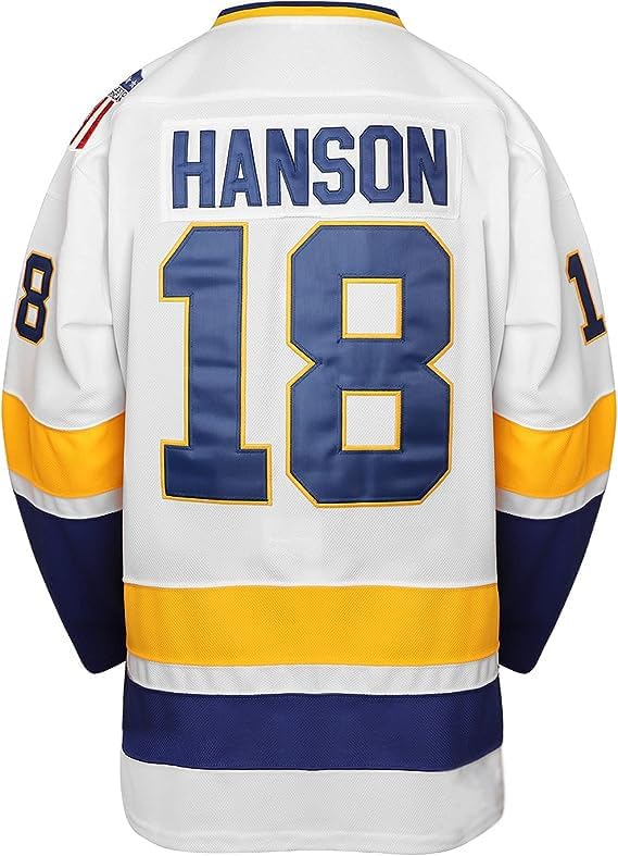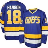 هانسون براذرز هوكي جيرسي تشارلستون تشيفز 17 ستيف 18 جيف سلاب شوت فيلم هوكي الفانيلة أزرق أبيض