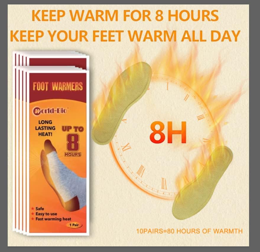 ضروري للاستخدام الخارجي - توفر أدوات تدفئة أصابع القدم الساخنة الدفء الفوري بسرعة، وهي رائعة للأنشطة الداخلية أو الأنشطة الخارجية، وهي فكرة للتزلج أو صيد الأسماك أو المشي لمسافات طويلة أو التخييم أو الصيد أو البقاء دافئًا في الشتاء البارد. يبقيك دافئًا في البرد بالخارج لمدة تصل إلى 8-10 ساعات.