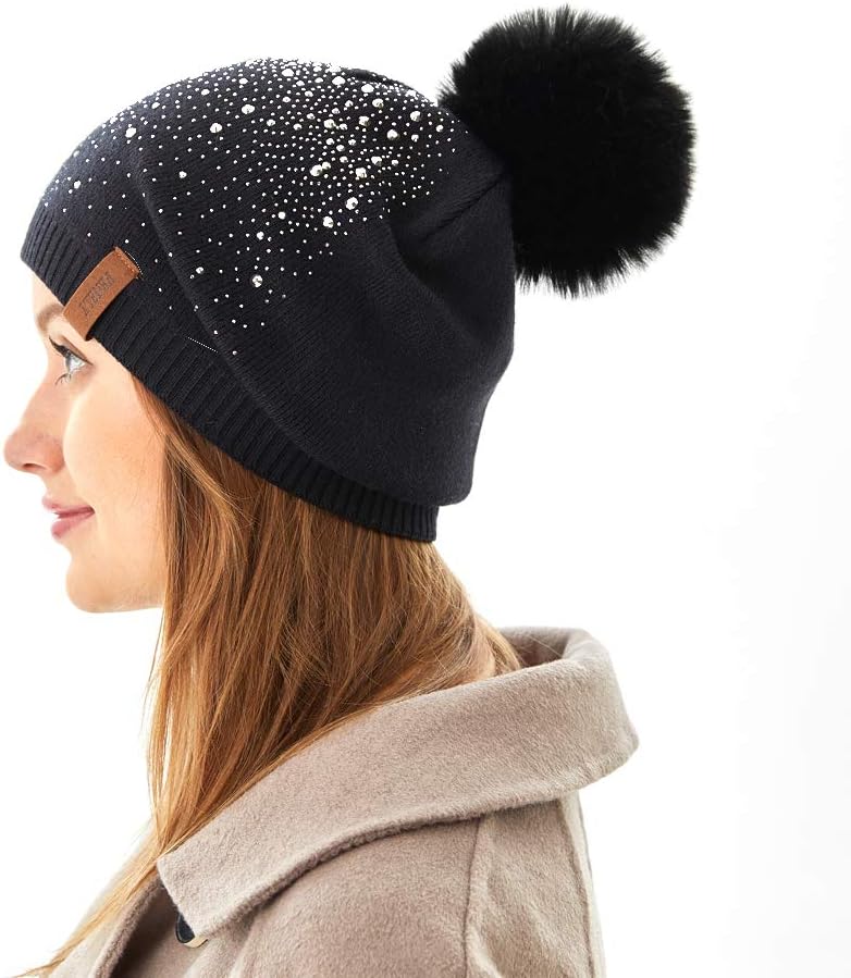 ❤التصميم: قبعة النجمة المرصعة بالنجوم سميكة بطبقتين من القماش والجزء الأمامي من القبعة مصنوع من مادة على شكل ماسي لخلق نمط مرصع بالنجوم. قبعة صغيرة جميلة مع كرة كبيرة من الفرو الصناعي، يمكن لهذه الكرة أن تقاوم الضغط والتجاعيد، ولكنها غير قابلة للفصل. مقاس القبعة يناسب معظم مقاسات رأس البالغين.