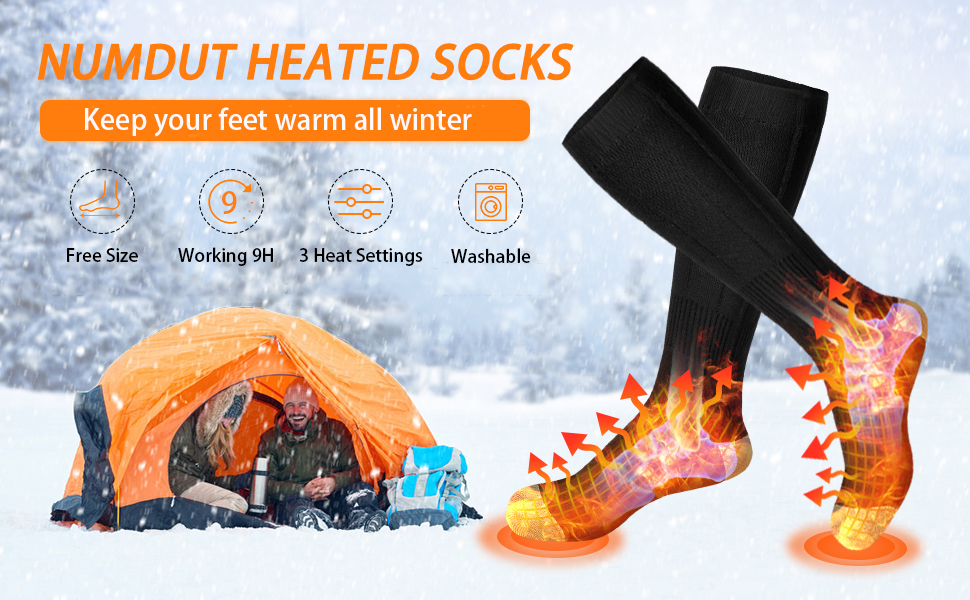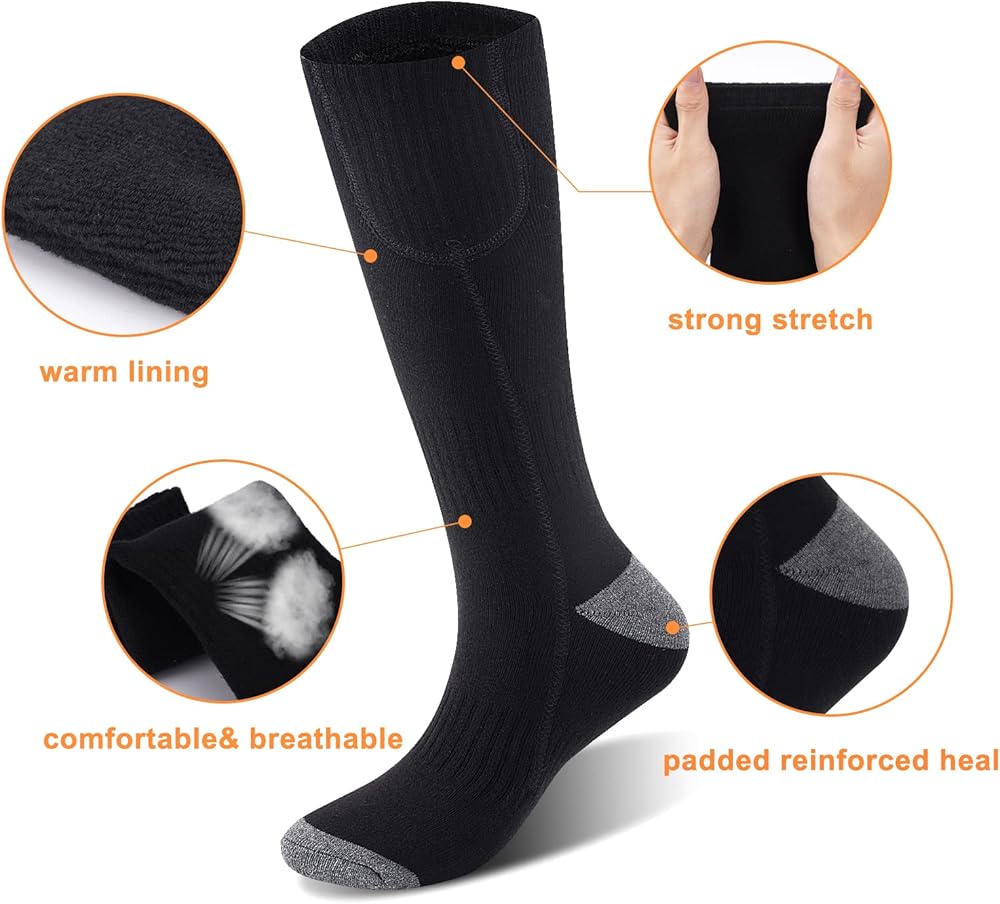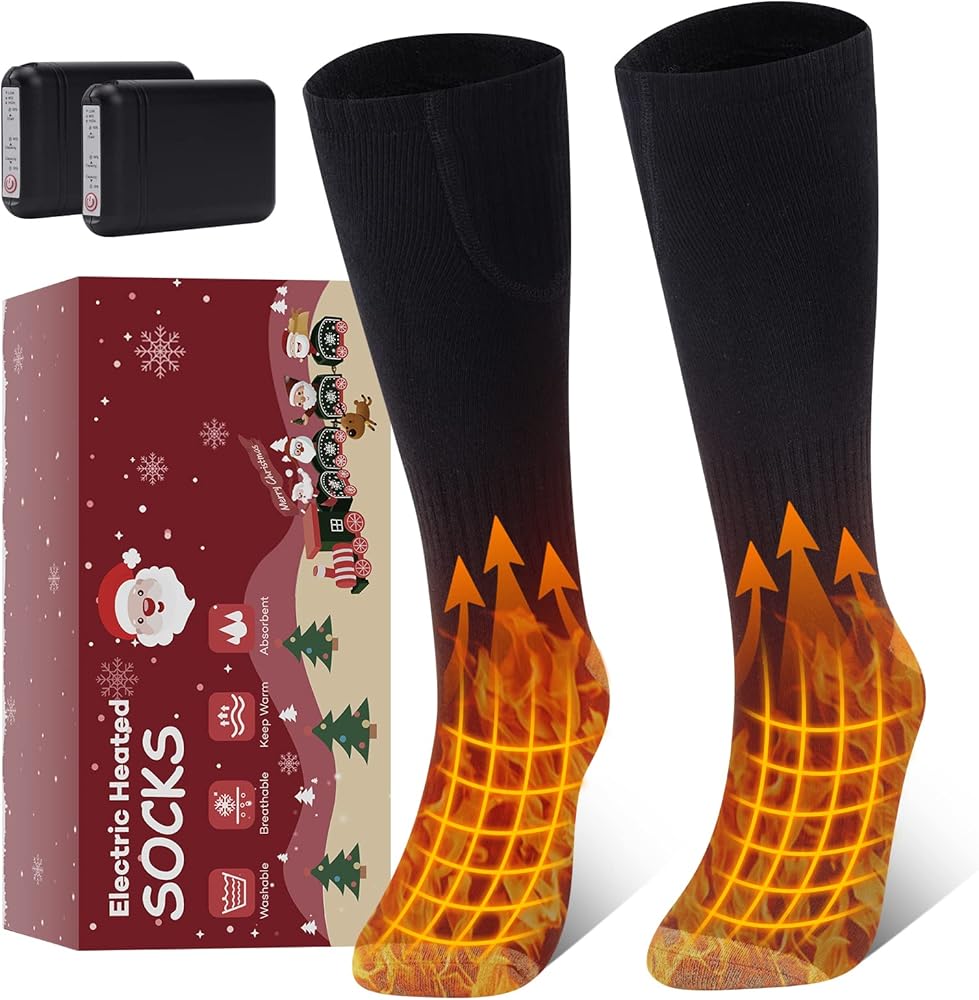 【WIDE APPLICATION WINTER SOCKS】The heated socks are suitable for a wide range of indoor and outdoor winter activities, including fishing, camping, snowboarding, hunting, hiking, and outdoor work. They also make for a perfect birthday gift, Happy Halloween gift, or Christmas gift for friends and family.