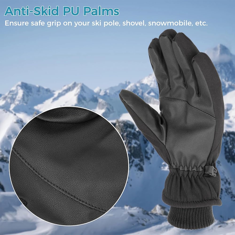 【راحة يد من البولي يوريثان غير قابلة للانزلاق】 تتميز قفازات الثلج الخاصة بنا بطبقة راحة يد من البولي يوريثان توفر أداءً استثنائيًا مضاد للانزلاق. سواء كنت تمسك بأعمدة التزلج أو المجرفة أو مقابض عربة الثلج، كن مطمئنًا إلى أن الانزلاق ليس خيارًا. سيتم رفع مستوى سلامتك أثناء التزلج.